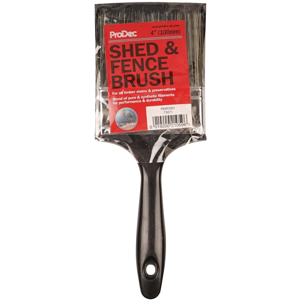 A mixture of polyester and pure bristle for durability, this 4-inch Shed and Fence Brush is ideal for bringing new life to your garden. This brush has a black beaver tail handle for comfort and easy pickup. Ideal for most wood and timber treatments, including creosote, this brush provides a good application on wood surfaces, whether rough or smooth.
