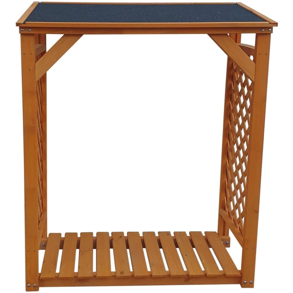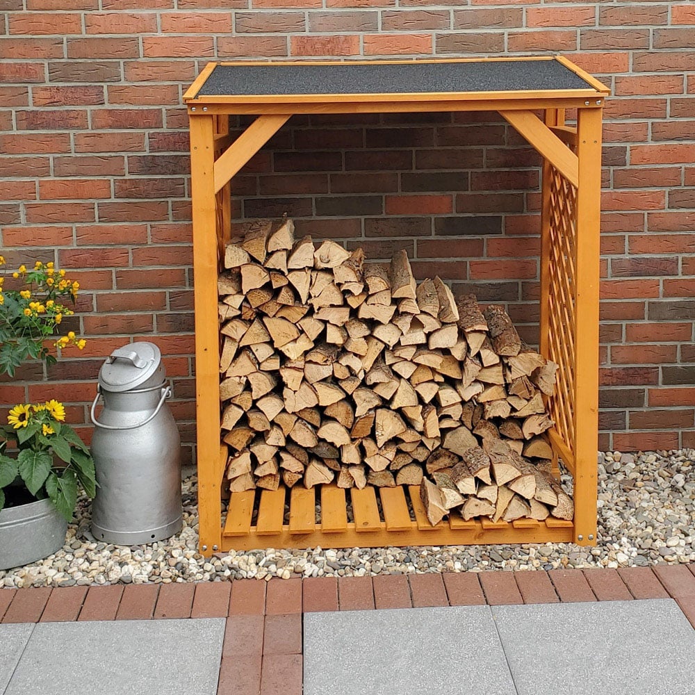 Keep the wooden logs safely with the Promex Honey Brown Garden Log Store. This rack shed is a sturdy and stylish fireplace accessory that is skillfully designed to protect freshly cut logs. With its roof covered in felt for enhanced protection and a solid pine wood structure, the wooden log store offers ample storage space for wood logs to make them last through the winter season. It features a waterproof coating that makes it a practical addition to your outdoor space. This firewood rack is easy to install and can be conveniently used for a variety of storage purposes.