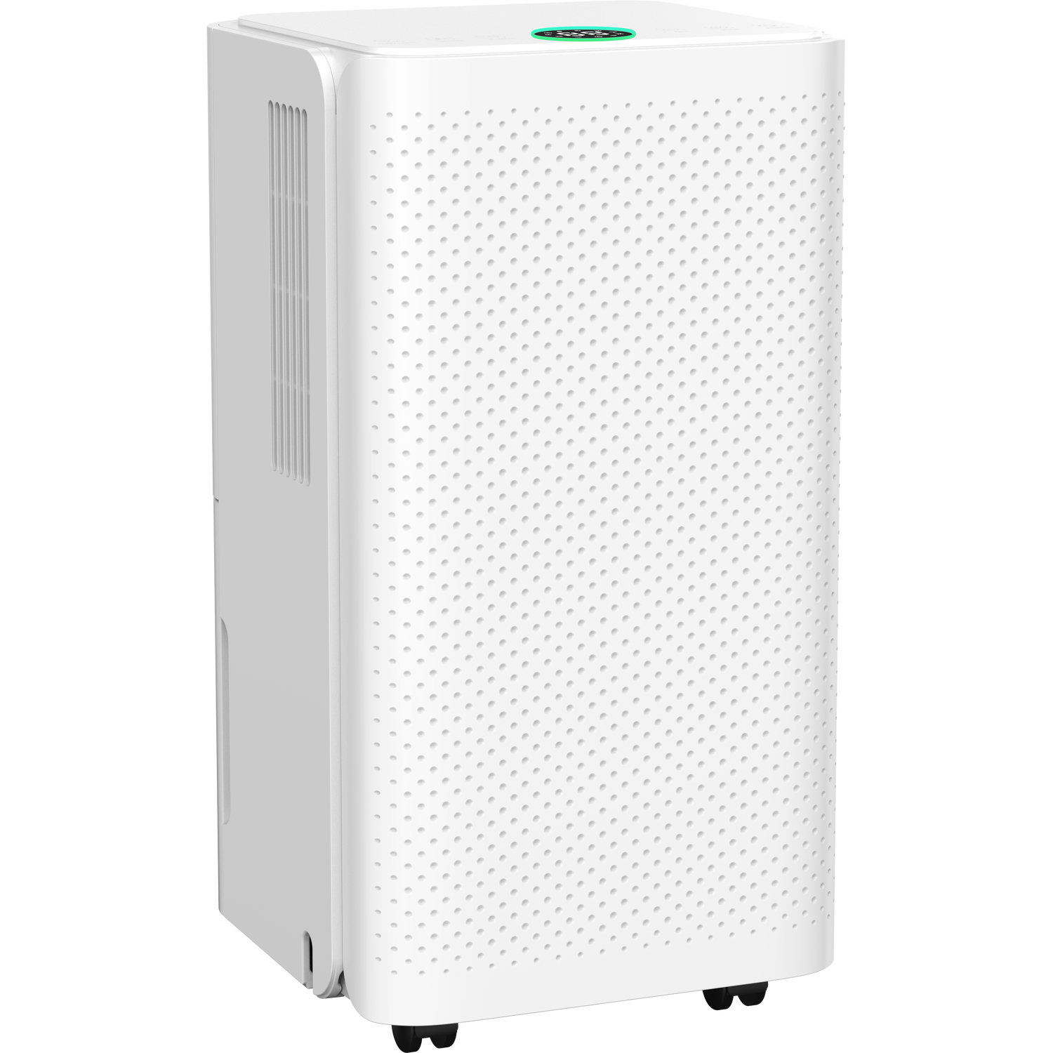 Keep your space fresh and dry with the Prosafe Portable Mini Dehumidifier 10L. This compact and modern dehumidifier is perfect for small spaces, featuring a 10-litre capacity and effective moisture removal. Its sleek design includes a front panel with circular air holes and wheels for easy movement. Wave goodbye to excess moisture and enjoy a comfy, mould-free environment with this dehumidifier.