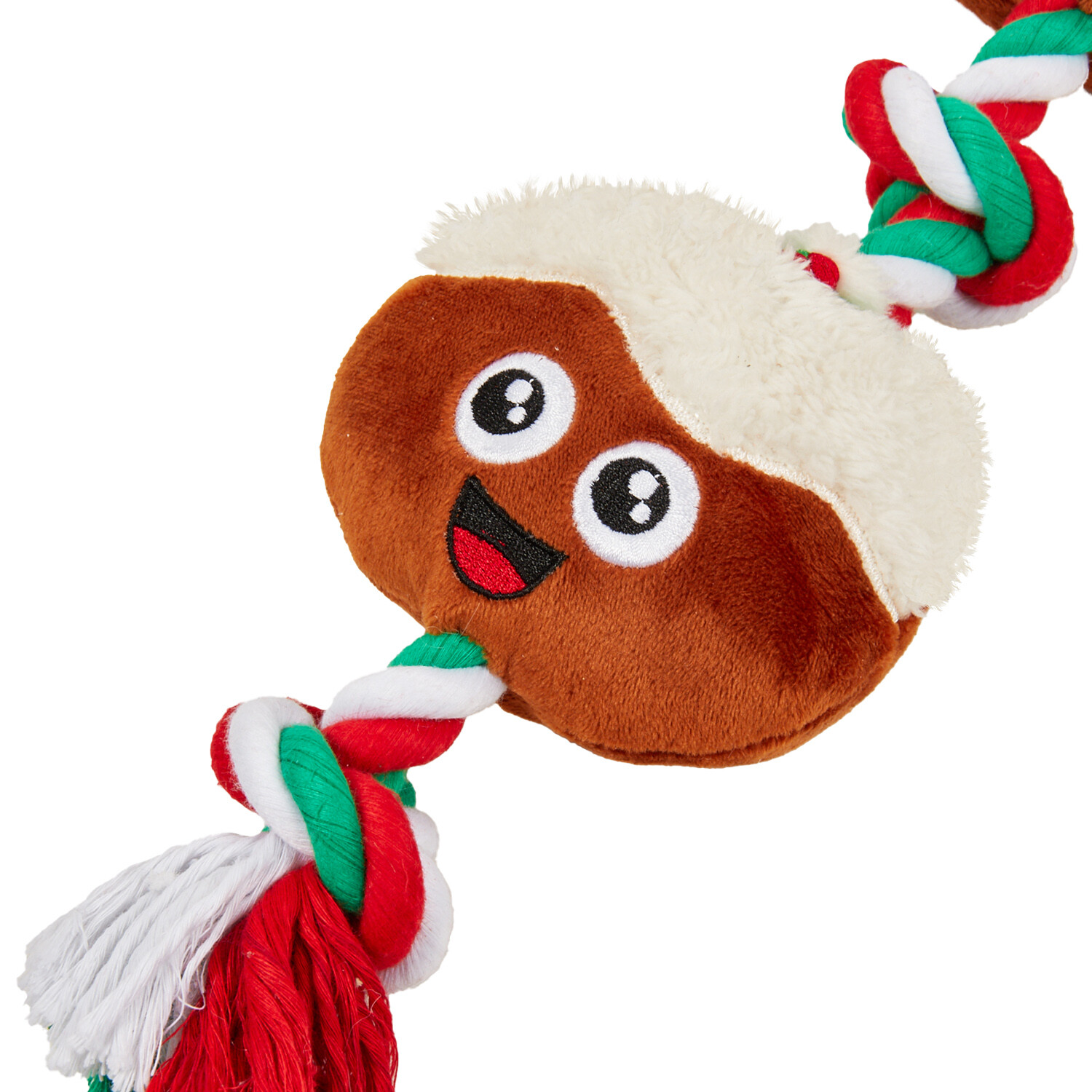 Get your pooch into the festive mood with this Pudding Rope Dog Toy. This playful toy features a rope with squeaker puddings, making it perfect for throwing, tugging, and interactive play. Designed to keep your dog entertained and active, it ensures your pooch stays away from boredom.