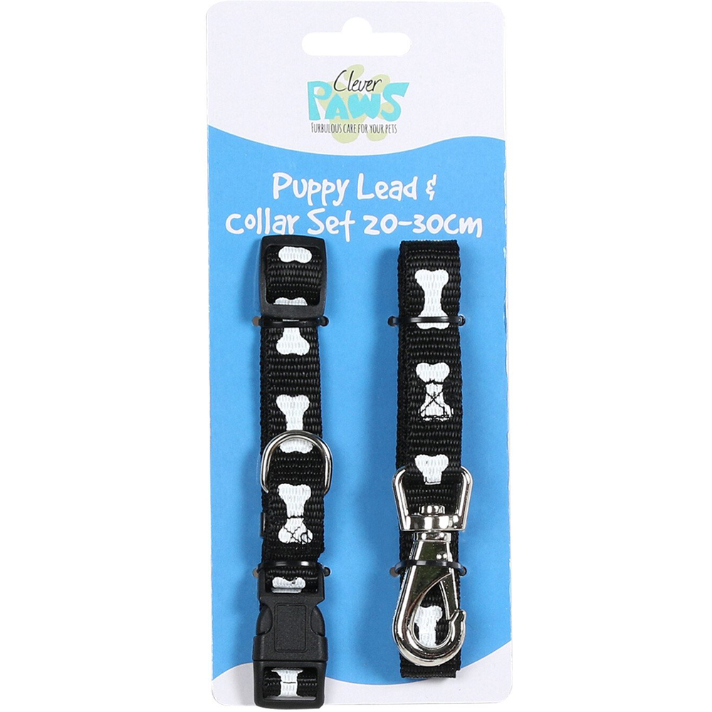 Take your new pup to explore the outdoors with this Puppy Lead and Collar Set. This two-piece matching set will look adorable and it's adjustable to make sure your pooch is comfortable and secure. Featuring a super cute bone print, this is a puppy essential!