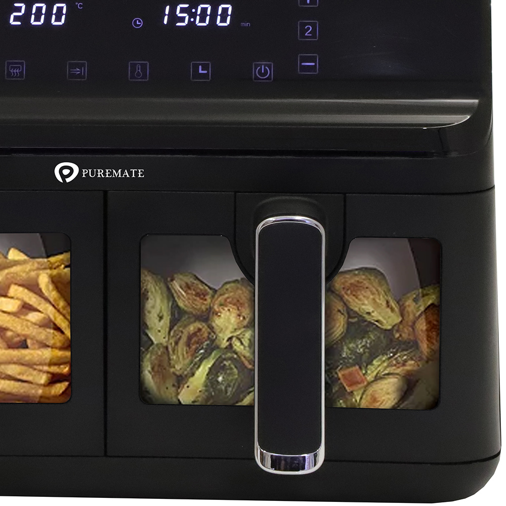 PureMate Black Dual Digital Air Fryer with Timer 9L (2 x 4.5L drawers)