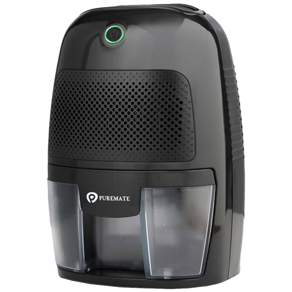 Maintain the humidity level of your home air with this Puremate PM 405 Black Mini Dehumidifier. The stunning dehumidifier quickly and efficiently removes dampness, mould and moisture from the air. Perfect for use in small areas such as the kitchen, garage, caravan, wardrobe and other areas prone to damp air. Easy to use, the dehumidifier will automatically shut off once the tank is full and works tirelessly to reduce the moisture level of your surroundings. Apart from this, it also comes with indicator lights for added convenience. Suitable for 15m² rooms. Size: 600ml.