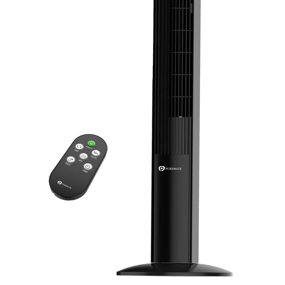 Stay cool even on the hottest days of the summer with this Puremate Black Tower Fan 47 inch. With a powerful 28-watt DC motor, this unit provides exceptional cooling power delivered efficiently. It features twelve-speed modes to suit all needs and environments with a 70-degree rotation. Apart from this, it comes with a 12-hour timer option with flexible 60-minute increments that can be controlled with a remote control or manually. The tower fan includes an ionizer function that helps to maintain the negative ions in the air to purify indoors. This reduces the fine dust present in the air and creates a hypoallergenic environment to improve respiratory comfort in allergy sufferers. Sleek and stylish, this tower fan is a perfect fit for all your rooms and makes a practical addition.