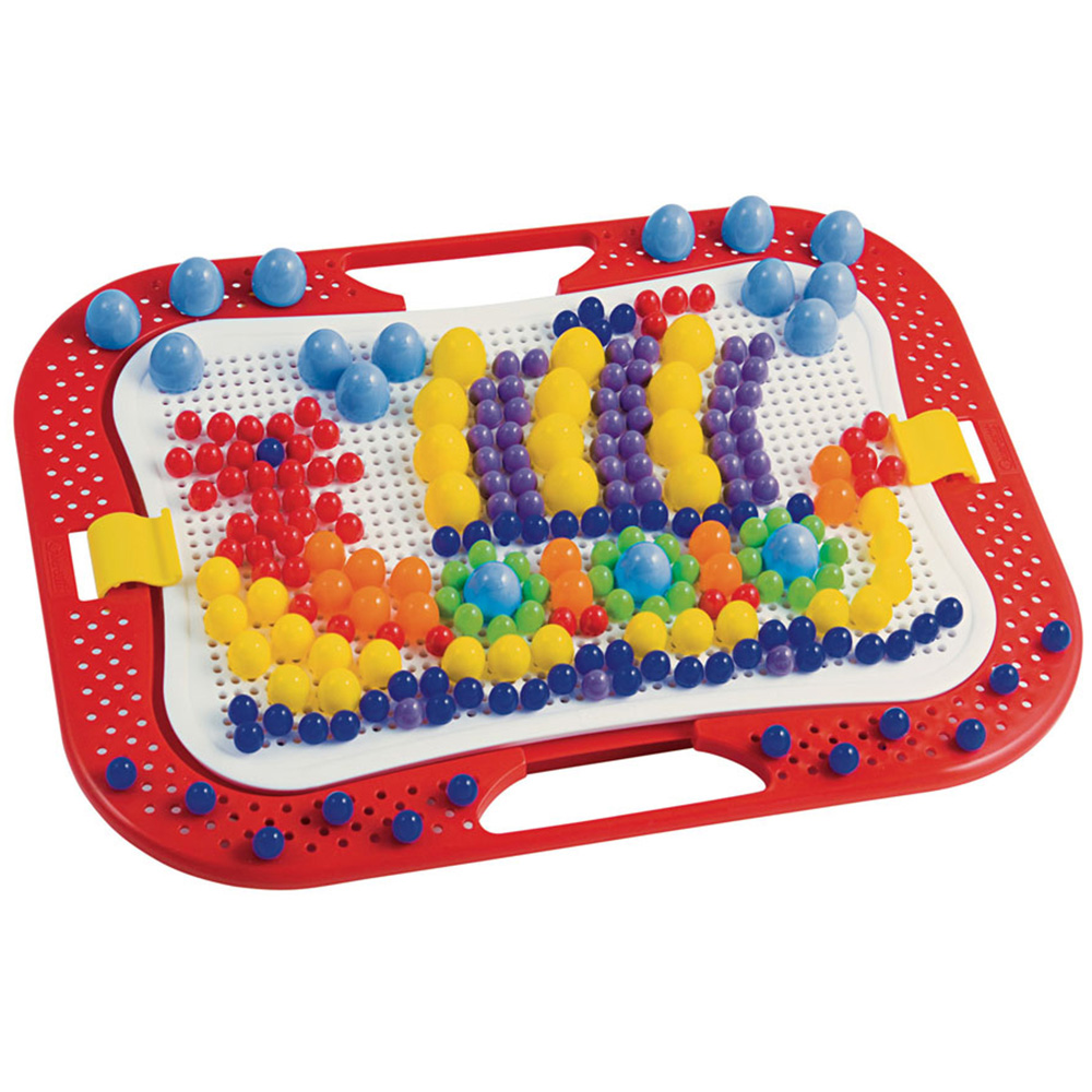 Children can create various pictures or patterns with this fun pinboard by simply inserting them into the holes in the game board. This fun set consists of a perforated game board, with rounded corners. It also comes with 300 brightly multicoloured 10, 15 and 20 mm pins. This allows children to express themselves as freely as possible, because they can make lots of characters, animals, or whatever they love. The game board has a carrying handle, and the pins can be stored in the board, when not in use, making it ideal for travelling. Suits ages 3 years +.