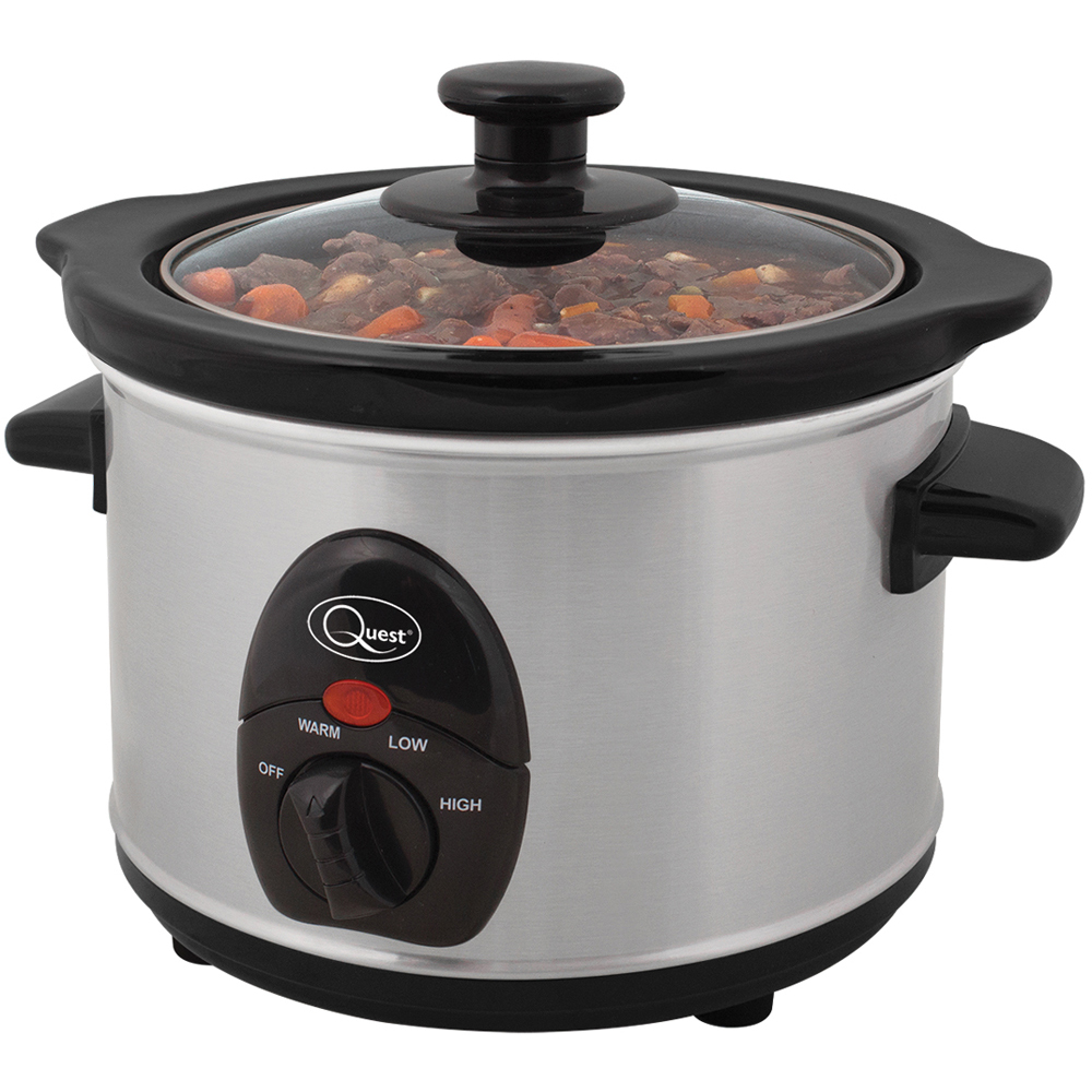Enjoy easy cooking with this Quest Stainless Steel Slow Cooker. This 1.5-litre stainless-steel slow cooker provides hassle-free cooking options and allows you to produce delicious homemade meals for solo diners or small families. The ceramic pot can be removed from the main body of the slow cooker, allowing you to take it to the table ready for serving, and is dishwasher safe. The slow cooker features a transparent glass lid that allows you to keep an eye on the food whilst it is cooking. Also, this compact slow cooker has three temperature settings that all offer a separate cooking experience. ‘High’ will cook the food for six to eight hours, ‘Low’ will cook the food for two to four hours, and ‘Keep Warm’ will simply keep the food hot until you’re ready to eat it. Plus, this slow cooker is perfect for making curries, stews, casseroles, soups, pot roasts, and even delicious desserts like crumbles, brownies and cobblers. Power: 120W.