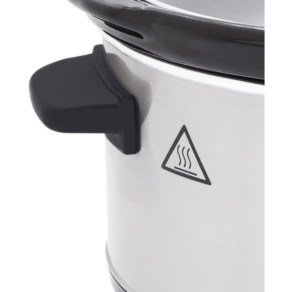 Enjoy easy cooking with this Quest Stainless Steel Slow Cooker. This 3.5-litre stainless-steel slow cooker provides hassle-free cooking options and allows you to produce delicious homemade meals for solo diners or small families. The ceramic pot can be removed from the main body of the slow cooker, allowing you to take it to the table ready for serving, and is dishwasher safe. The slow cooker features a transparent glass lid that allows you to keep an eye on the food whilst it is cooking. Also, this compact slow cooker has three temperature settings that all offer a separate cooking experience. ‘High’ will cook the food for six to eight hours, ‘Low’ will cook the food for two to four hours, and ‘Keep Warm’ will simply keep the food hot until you’re ready to eat it. Plus, this slow cooker is perfect for making curries, stews, casseroles, soups, pot roasts, and even delicious desserts like crumbles, brownies and cobblers. Power: 200W.