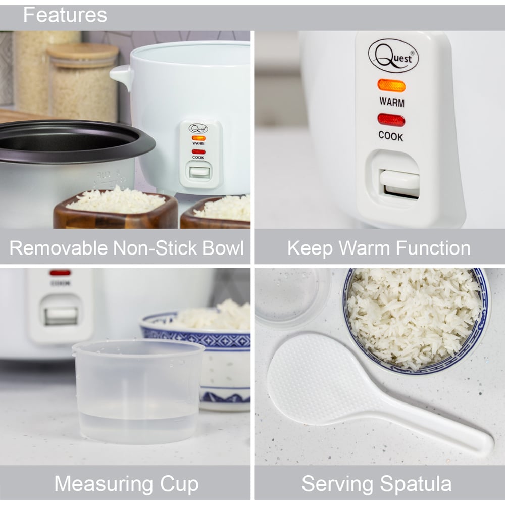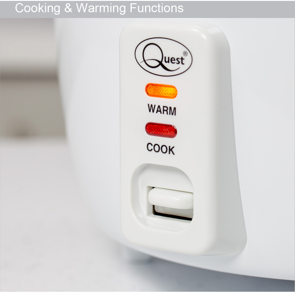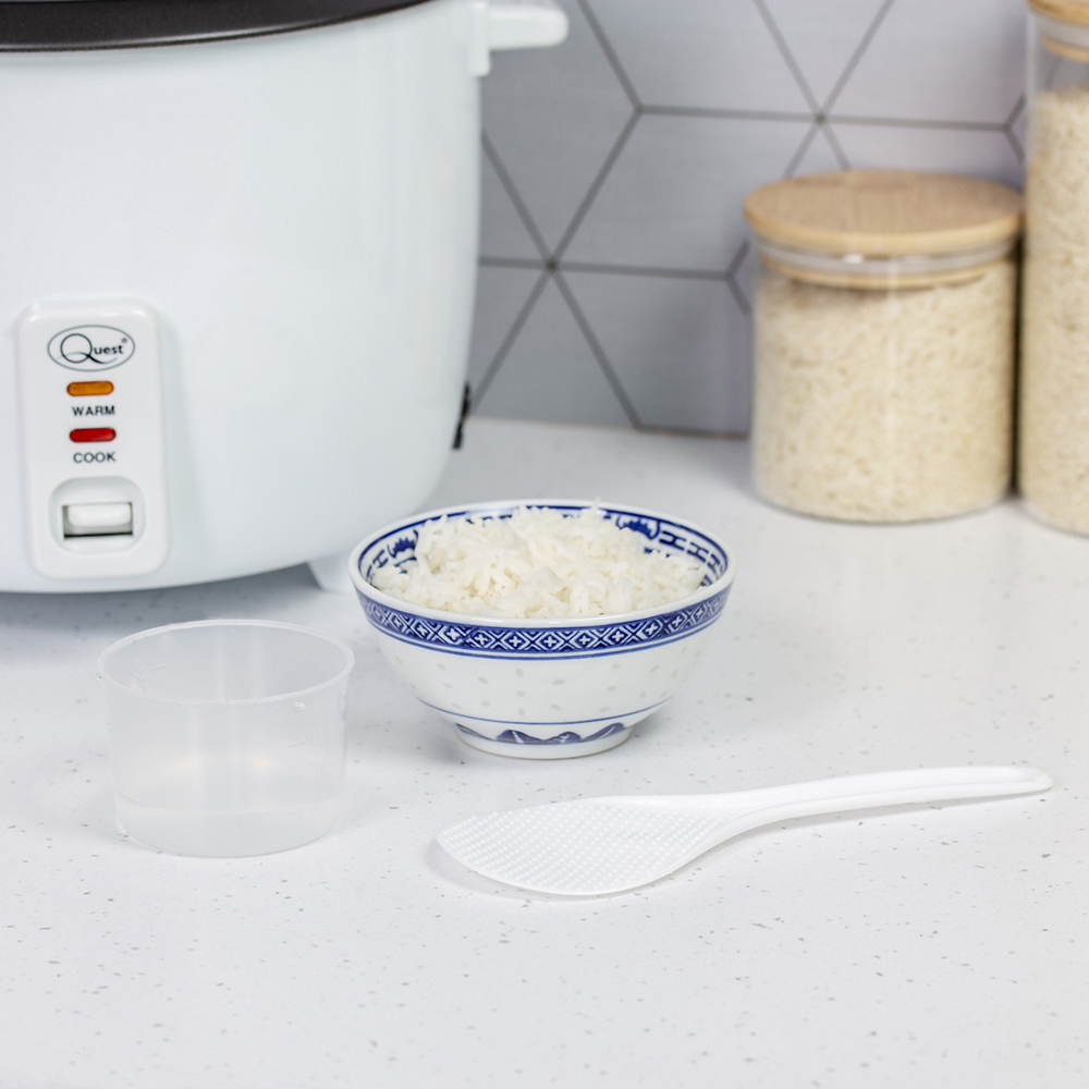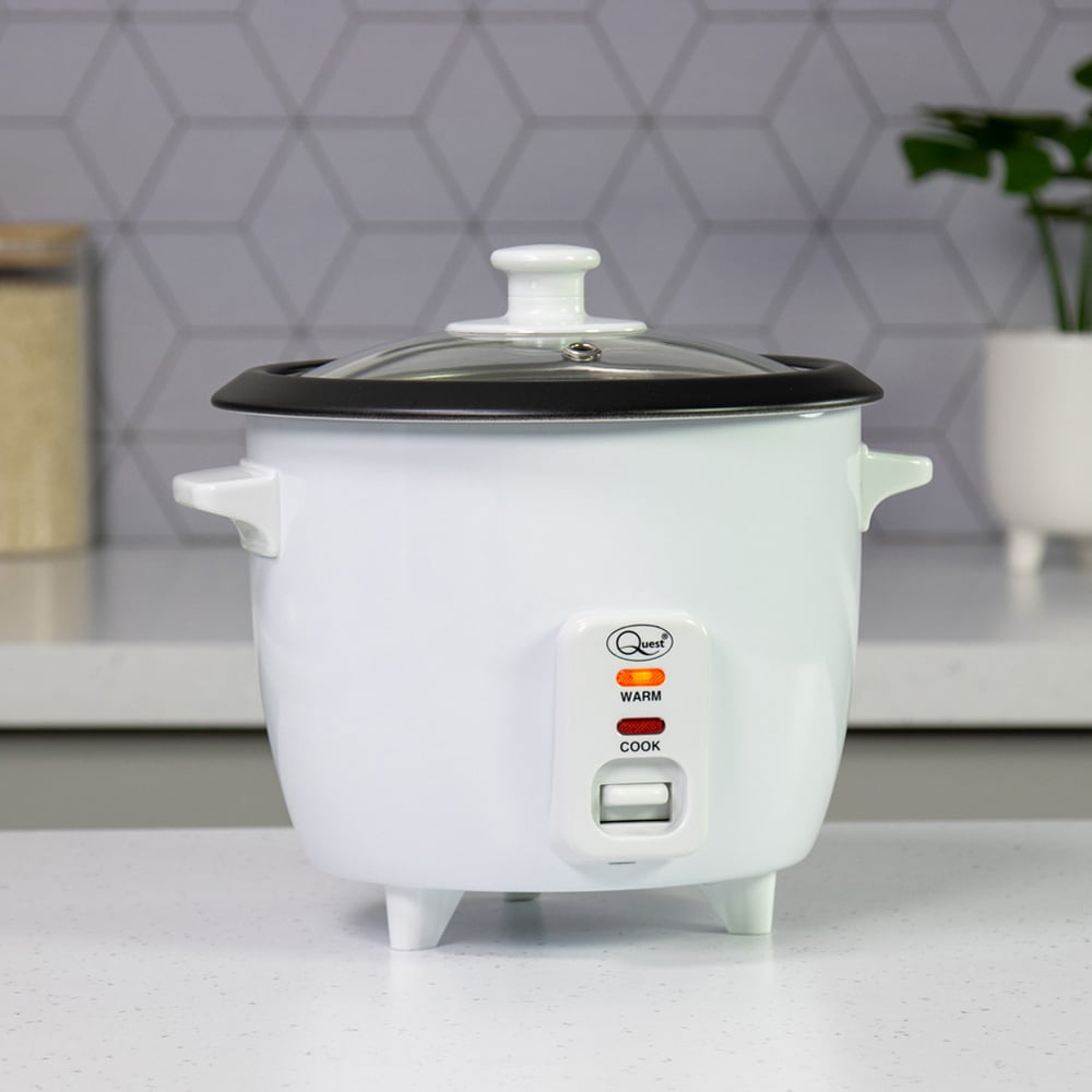 Enjoy easy cooking with this Quest White Rice Cooker. This fantastic rice cooker has an 800ml capacity and is ideal for couples, individuals or small families looking to make the perfect flavoursome rice quickly and easily. The non-stick bowl is removable so you can easily transfer it to your dining room table. Also, the transparent lid allows you to check on the progress of the rice during cooking. The rice cooker comes with a measuring cup to ensure you always get your portions right and a spatula for serving. Plus, it features an automatic keep-warm function, and the two LED lights on the front of the machine will indicate when the rice is either being cooked or being kept warm. Multifunctional, the rice cooker allows you to cook chilli, stews, casseroles, and risottos, giving you the ultimate flexibility come dinner time. Power: 350W.