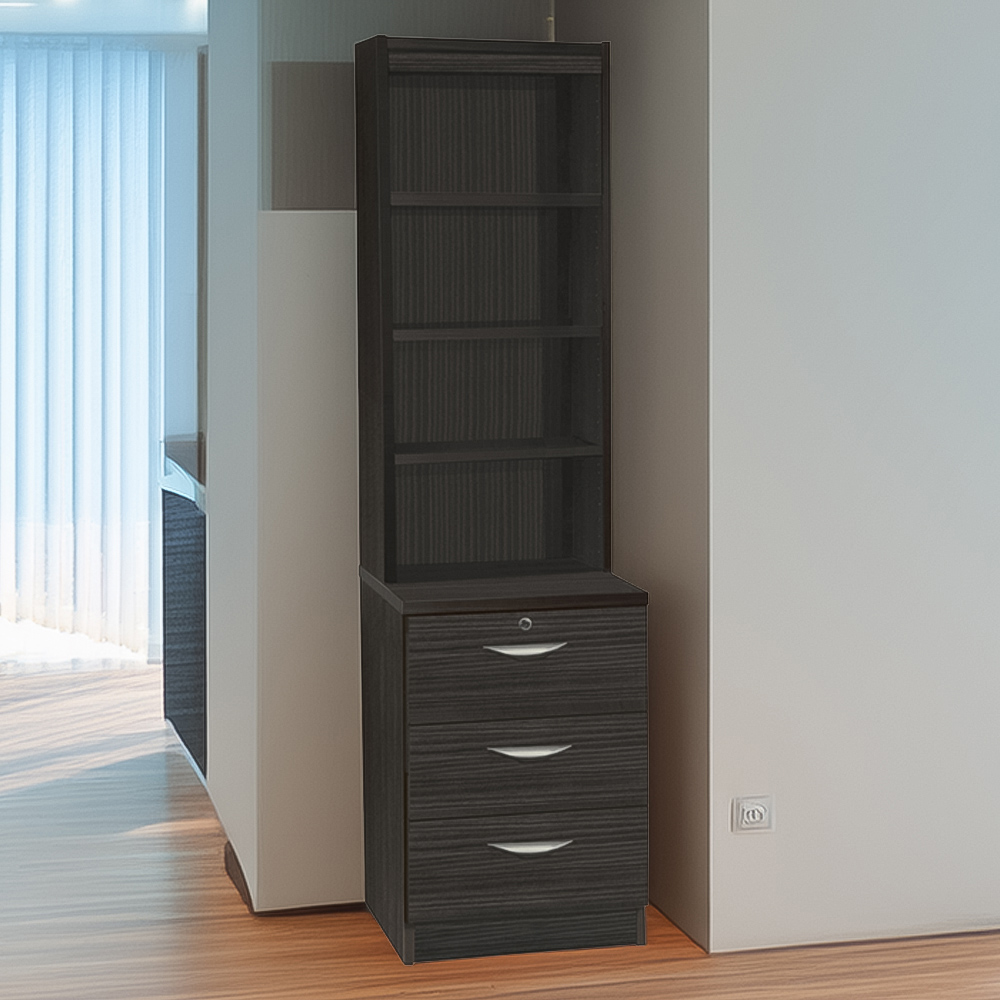 R White Cabinets 3 Drawer 4 Shelf Black Storage Unit with Hutch