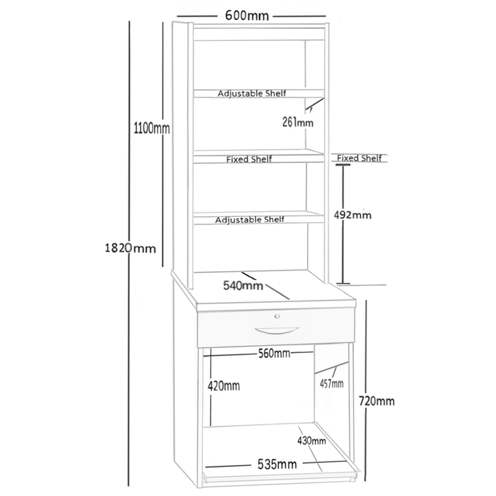 This effective unit is Ideal for laptop users or discreetly housing noisy printers. Consisting of one personal drawer and one fully adjustable slide-out Printer/ Scanner Shelf measuring 540 x 430mm and featuring twelve height settings to accommodate various printer and scanner combinations. A colour-coordinating cable port is included, and well-thought-out cable management eliminates wire trapping. The sturdy hutch features one mid fixed shelf and adjustable shelves with nine height settings. These two pieces can easily be connected. Made from furniture-quality MFC, which is resistant to hot cups and scratches. The top features a 40mm overhang to the rear for clearance of plugs, etc. All panels are 18mm thick, including the important back panel, which ensures added strength and rigidity. Your furniture will arrive fully assembled. Please be aware that this product is of superior quality and therefore heavy. You may require assistance with room placement.