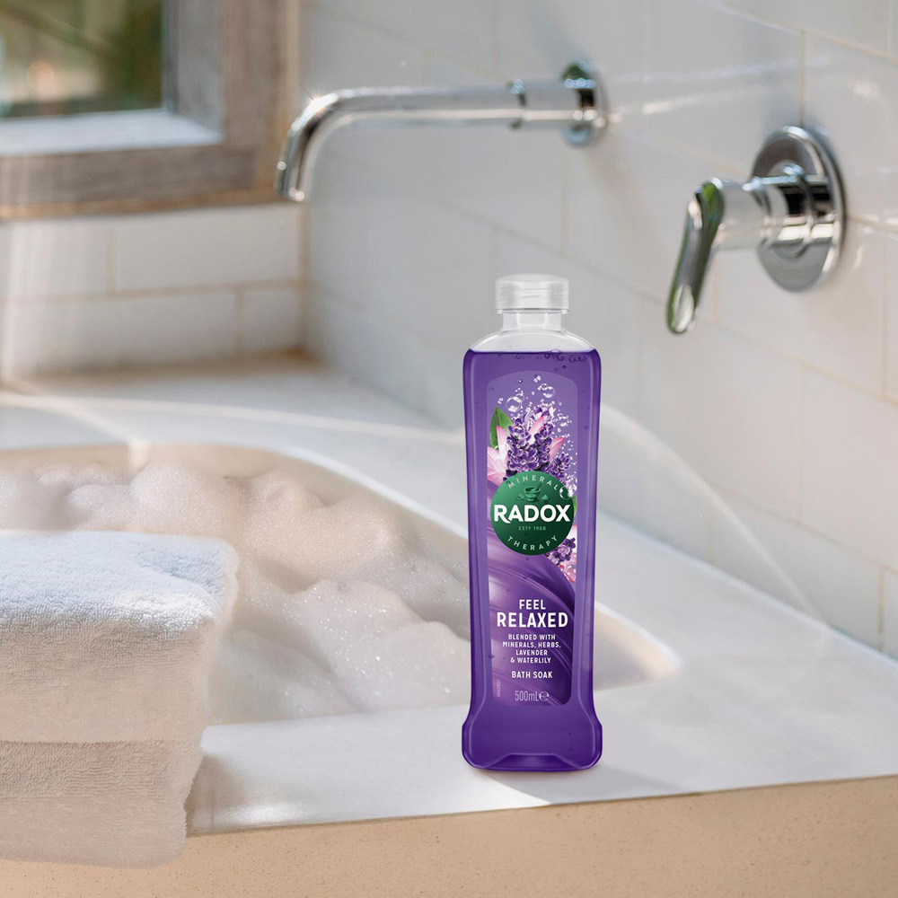 Radox 100% Nature Inspired Fragrances Bath Soak, Feel Relaxed, 6 Pack, 500ml. An uplifting bath soak that leaves your skin delightfully fragrant. Bath gel with sweet pomegranate and red apple scents inspired by nature's finest ingredients. A moisturising bath Mood changing fragrance bath soak which cleanses your body and makes your feel relaxed. A moisturising bath and bath foam that leaves skin feeling fresh and clean post-bath. Lavender and Waterlily scents open your mind up to a world of possibilities. A Bath Soak with Lavender and Waterlily scent leaving you to feel relax. Key Features : With a blend of clary sage and sea minerals scent. Radox - Nature Inspired Fragrance!. Mood changing fragrance pack which makes you feel relaxed. Suitable for all skin types. Feel fresh and clean all day. pH neutral, dermatologically tested. With the scent of rosemary and eucalyptus. Ingredients: Aqua, Sodium Laureth Sulfate, Cocamidopropyl Betaine, Sodium chloride, Parfum, Citric acid, Lavandula Angustifolia Flower Extract, Nymphaea Alba Root Extract, Propylene glycol, Sodium benzoate, Sodium lactate, Sorbitol, Tetrasodium EDTA, Benzyl alcohol, Benzyl Benzoate, Butylphenyl Methylpropional, Coumarin, Limonene, Linalool, CI 17200, CI 42090. Warnings: If product gets in your eyes, rinse them with warm water. Avoid eyes and other sensitive areas. As we are always looking to improve our products, our formulations change from time to time, so please always check the product packaging before use.