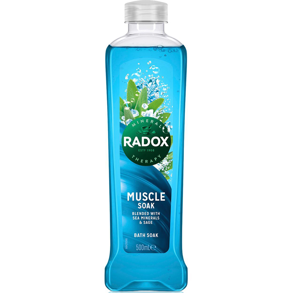 Radox 100% Nature Inspired Fragrances Bath Soak, Muscle Soak, 6 Pack, 500ml. An uplifting bath soak that leaves your skin delightfully fragrant. Bath gel with sweet pomegranate and red apple scents inspired by nature's finest ingredients. A moisturising bath Mood changing fragrance bath soak which cleanses your body and makes your feel relaxed. A Bath Soak blend of clary sage and sea minerals will warm your muscles and revive your body and mind. All Radox products contain a special blend of at least two active natural ingredients specially chosen to transform bodies and minds. Key Features : With a blend of clary sage and sea minerals scent. Radox - Nature Inspired Fragrance!. Mood changing fragrance pack which makes you feel relaxed. Suitable for all skin types. Feel fresh and clean all day. pH neutral, dermatologically tested. With the scent of rosemary and eucalyptus. Ingredients: Aqua, Sodium Laureth Sulfate, Sodium Chloride, Parfum, Cocamidopropyl Betaine, Eucalyptus Globulus Oil, Rosmarinus Officinalis Extract, Citric Acid, Linalool, Limonene, Glycerin, Tetrasodium EDTA,Hexyl Cinnamal, Butylphenyl Methylpropional, Sodium Lactate, Dipropylene Glycol, Eugenol, Citronellol, Sodium Benzoate,CI 42090,CI 19140. Warnings: If product gets in your eyes, rinse them with warm water. Avoid eyes and other sensitive areas. As we are always looking to improve our products, our formulations change from time to time, so please always check the product packaging before use.