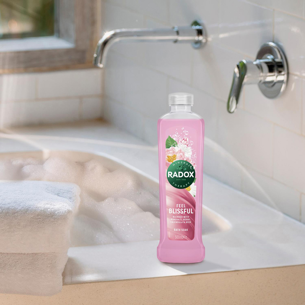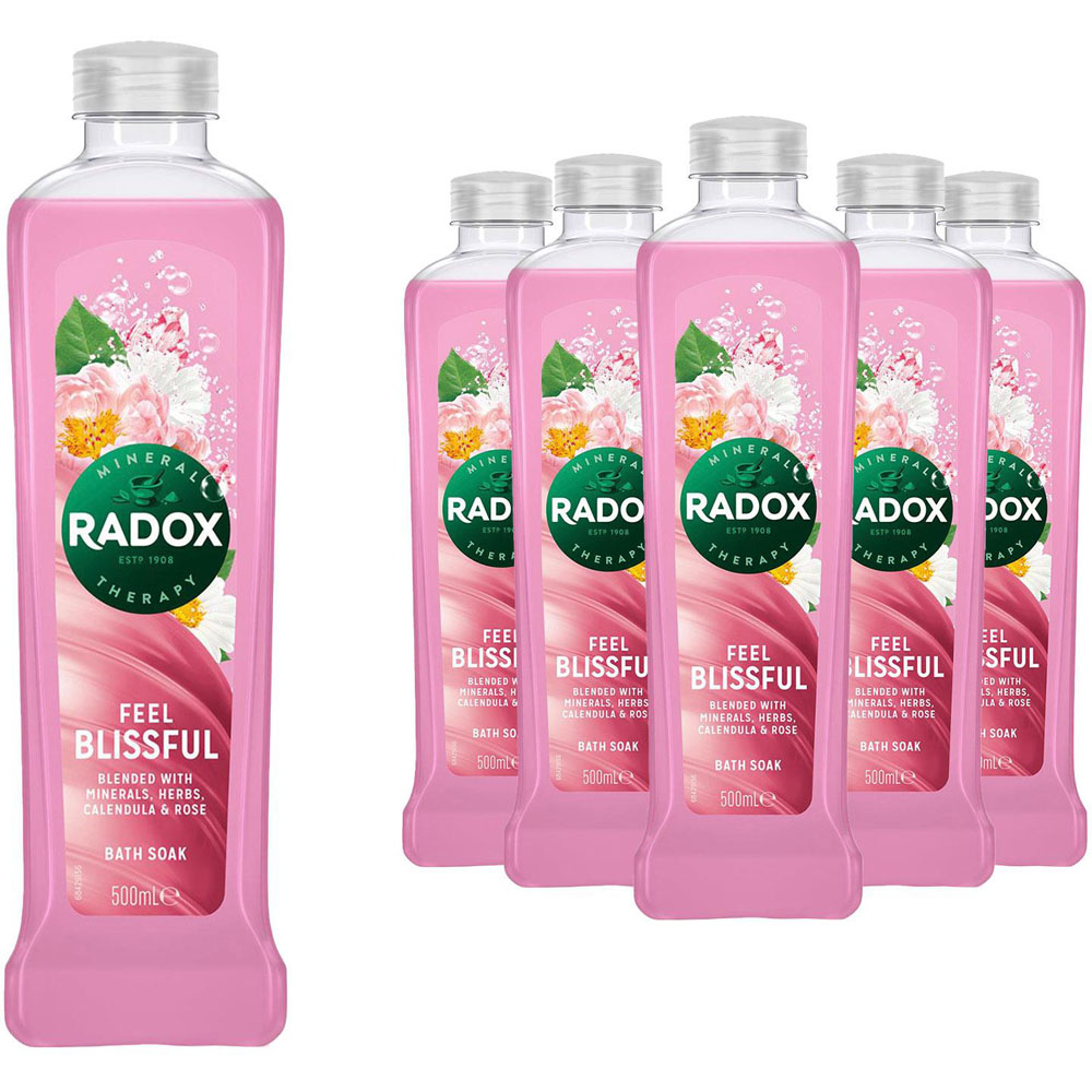 Radox 100% Nature Inspired Fragrances Bath Soak, Feel Blissful, 6 Pack, 500ml. An uplifting bath soak that leaves your skin delightfully fragrant. Bath gel with sweet pomegranate and red apple scents inspired by nature's finest ingredients. A moisturising bath Mood changing fragrance bath soak which cleanses your body and makes your feel relaxed. A moisturising bath and bath foam that leaves skin feeling relaxing and clean post-bath. With the scent of Calendula and Rose open your mind up to a world of possibilities. A Bath Soak with the scent of Calendula and Rose will revive your body and mind. Key Features : With a blend of clary sage and sea minerals scent. Radox - Nature Inspired Fragrance!. Mood changing fragrance pack which makes you feel relaxed. Suitable for all skin types. Feel fresh and clean all day. pH neutral, dermatologically tested. With the scent of rosemary and eucalyptus. Ingredients: Aqua, Sodium Laureth Sulfate, Sodium chloride, Cocamidopropyl Betaine, Glycerin, Propylene glycol, Hydrogenated Starch Hydrolysate, Calendula Officinalis Flower Extract, Sodium lactate, Glucose, Sorbitol, Rosa Gallica Flower Extract, Parfum, Glycol Distearate, Styrene/Acrylates Copolymer, Stealth-4, Sodium Lauryl Sulfate, Citric acid, Lactic acid, Sodium benzoate, Tetrasodium EDTA, Potassium sorbate, Phenoxyethanol, Ethylhexylglycerin, Caramel, Benzyl alcohol, Geraniol, Limonene, Linalool, CI 16035, CI 17200. Warnings: If product gets in your eyes, rinse them with warm water. Avoid eyes and other sensitive areas. As we are always looking to improve our products, our formulations change from time to time, so please always check the product packaging before use.