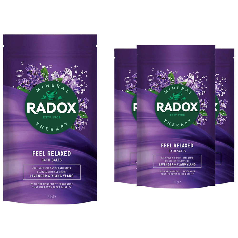 Radox Mineral Therapy Bath Salts Sleep Aromatherapy with Lavender&Ylang, 4x900g Your body's trying to tell you something. Time to listen. Time to swap press-ups and lunging for lounging in mineral sea salts. Don't float like a butterfly, sink like a stone into a warm lavender and ylang-ylang scented bath for some well-deserved me-time. From troubles to bubbles, close your eyes, relax and recover. RADOX Mineral Therapy Sleep Aromatherapy Bath Salts are crafted with 100% pure sea salt with natural calcium, sodium, and magnesium, and infused with pure essential oils - the perfect blend to help you unwind in a relaxing bath. Features: Radox Mineral Therapy Sleep Aromatherapy Bath Salts are scented with lavender and ylang-ylang and crafted with 100% pure sea salt Inspired by natures best ingredients, our premium bath salts are blended with the scents of lavender, ylang-ylang, and our DreamScentz fragrance which improves sleep quality At Radox, we have been blending mineral bath salts since 1908 to unleash a mood, whether you want to be energised or refreshed, uplifted or soothed Radox Sleep Aromatherapy Bath Salts are enriched with calcium, sodium, and magnesium and are pH neutral, meaning they are suitable for all skin types Relax in a bath with our blended sea salts to wash away stress and clear your mind. How to Use: Pour a generous amount (about 2-3 handfuls) of Radox bath salts under warm running water and allow them to fully dissolve before carefully stepping into the bath. Reseal the pouch firmly to keep it waterproof. For an extra intense mineral-bathing experience, increase the dosage to 4 or 5 handfuls. Ingredients: Maris Sal, Parfum, Disodium EDTA, Propylene Glycol, Sodium Chloride, Benzyl Salicylate, Citronellol, Coumarin, Geraniol, Hexyl Cinnamal, Limonene, Linalool, CI 14720, CI 19140, CI 42090 Safety Warnings: Avoid Getting Into The Eyes. If You Do, Rinse Well With Cool, Clean Water. Please Take Care When Stepping Out Of The Bath As It May Be Slippery. Box Contains: 4x Radox Mineral Therapy Bath Salts, 900gm.
