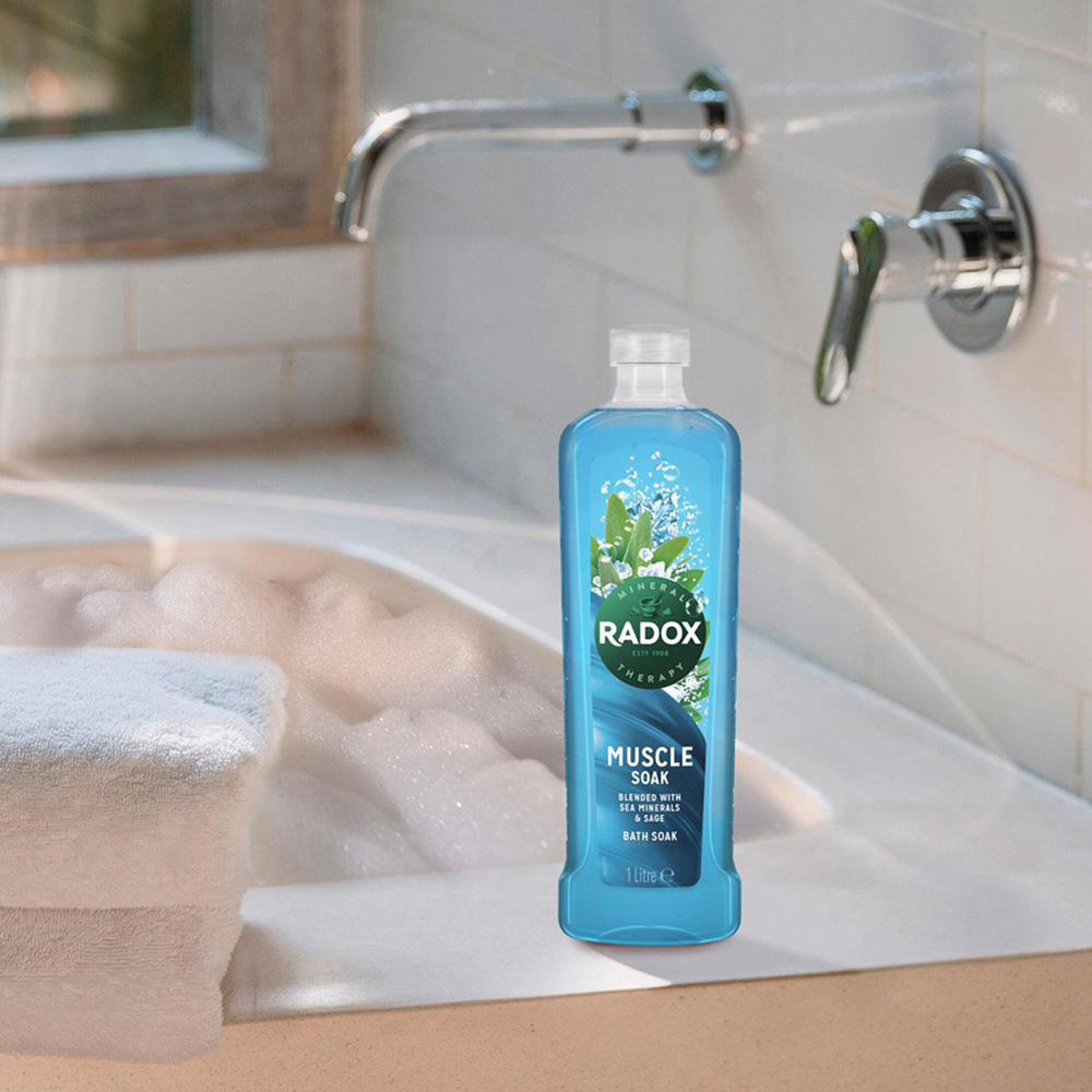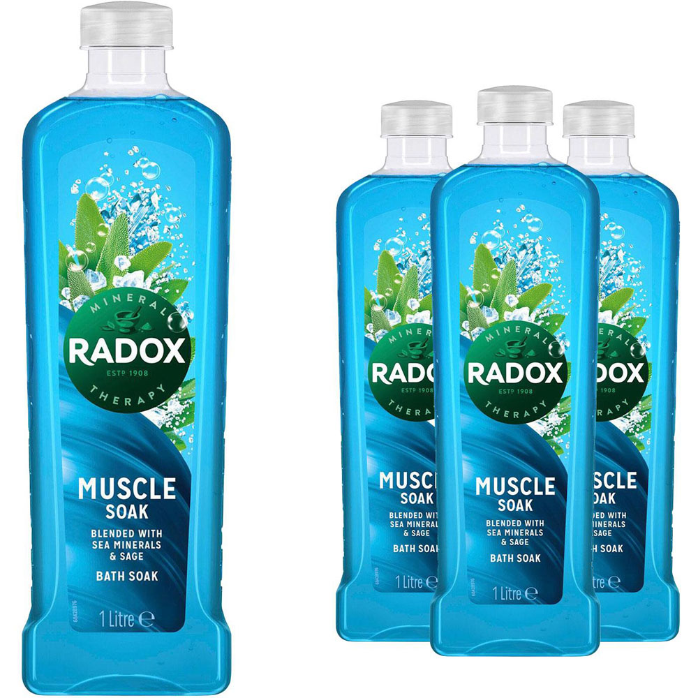 Radox Mineral Therapy Bath Soak Muscle Soak with Sea Minerals and Sage Scent 1L, 4 Pack. Enjoy the soothing blend of sea minerals and sage with RADOX Muscle Soak Bath Soak. From troubles to bubbles, close your eyes and let the replenishing bath soak cleanse your body and revive you. RADOX Muscle Soak Bath Soak is enriched with 4 minerals and RADOX's unique blend of 13 herbs that help you indulge in a relaxing bath therapy ritual and melt away tension in your muscles. Our blends, uniquely created with minerals and herbs, activate with hot water to cleanse and revive you in a restorative bubble bath. Features: Enjoy the soothing blend of sea minerals and sage with RADOX Muscle Soak Bath Soak to relieve tired, aching or damaged muscles. From troubles to bubbles, close your eyes and let the replenishing bath soak cleanse your body and revive you. Each of our bath soak's fragrance combinations is specially designed to unleash a mood, whether you want to be energised or refreshed, uplifted or soothed. Our bath soaks are suitable for daily use pour the bath product under running water and unwind in an aromatic bubble bath. RADOX Muscle Soak Bath Soak is pH skin neutral and suitable for all skin types. Relax in a bath with our delightfully fragrant bath soak, letting it cleanse your body and relax your senses. How to Use: For best results, pour bath gel under running water and relax. For lots of bubbles, pour a generous amount of RADOX Muscle Soak Bath Soak into an empty bath, and run the tap over the top whilst stirring with your hand. Ingredients: Aqua, Sodium Laureth Sulfate, Sodium Chloride, Cocamidopropyl Betaine, Parfum, Sodium Benzoate, Citric Acid, Sodium Lactate, Tetrasodium EDTA, Maris Sal, Calcium Chloride, Magnesium Sulfate, Salvia Sclarea Oil, Benzyl Salicylate, Linalool, CI 19140, CI 42090. Box Contains: 4x Radox Mineral Therapy Bath Soak Muscle Soak, 1L.