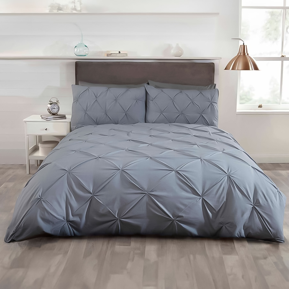 Bring an elegant feel to your space and look sensational in any bedroom with this Balmoral Duvet Set from Rapport Home. Including a duvet cover with a matching pillowcase, the set features an all-over intricate pin-tuck stitching pattern in a neutral silver colour. Complete with a button closing mechanism, this soft-to-the-touch duvet set will add a comfy yet stylish touch to your bed. Size: Single. Dimensions: duvet cover- 135 x 200cm and pillowcases- 50 x 75cm.