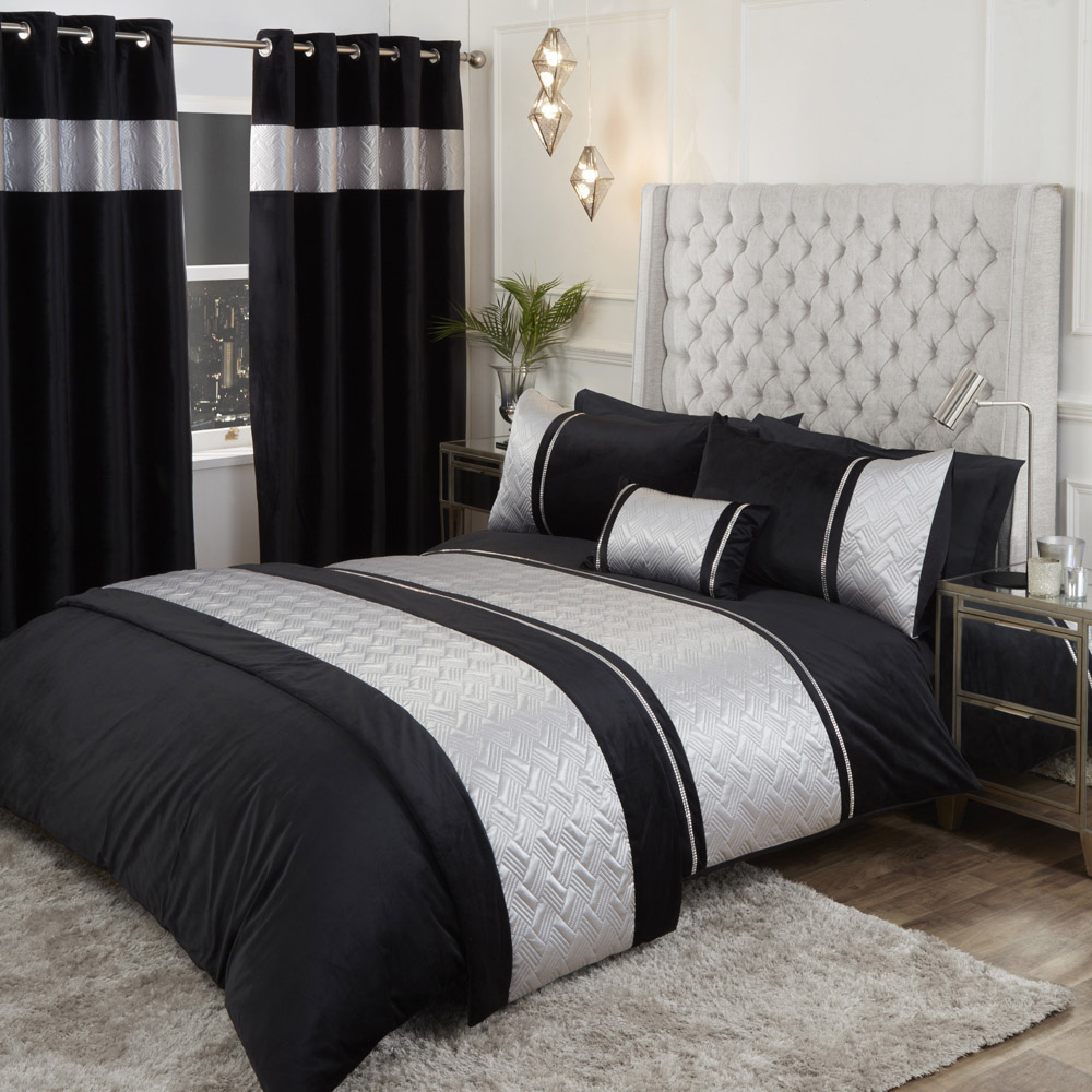 Rapport Home Capri Single Black and Silver Velvet Duvet Set