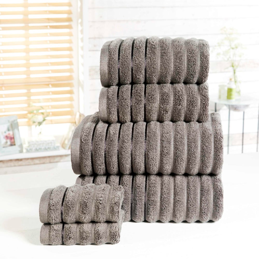 Transform your bathroom into a haven of luxury with the Rapport Home Charcoal Grey Ribbed Cotton Towel Bundle Set of 6. This set includes two face cloths, two hand towels, and two bath towels, each crafted from pure cotton for ultimate softness and absorbency. The plush ribbed texture and stripe weave design, accented with borders of silky sheen, add a touch of elegance while maintaining simplicity. Perfect for wrapping up in after a shower or a relaxing soak, these towels offer fast drying and easy-care convenience, making them a stylish and practical addition to your bathroom.