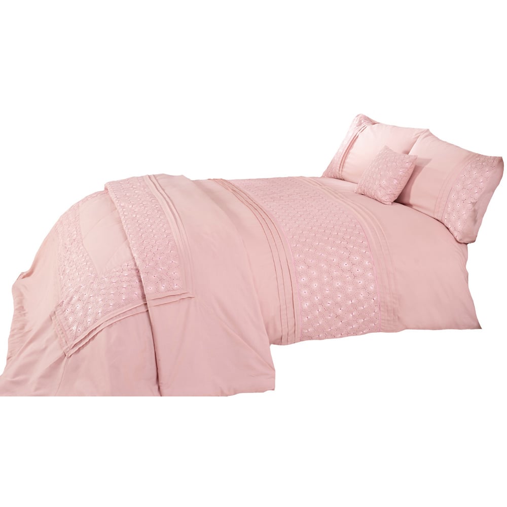 Bring an elegant feel with a sensational look in any bedroom with this finely crafted and embellished Everdean Pink Duvet Set from Rapport Home. Including a duvet cover with a coordinating boudoir cushion, they feature beautifully embroidered circles with pin tuck edging which is fresh and timeless. Complete with a button-closing mechanism, this duvet set will add a comfy yet stylish touch to your bed. Size: Single. Dimensions: duvet cover- 135 x 200cm and pillowcase- 50 x 75cm.