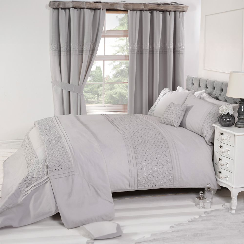 Bring an elegant feel with a sensational look in any bedroom with this finely crafted and embellished Everdean Silver Duvet Set from Rapport Home. Including a duvet cover with two coordinating boudoir pillowcases, they feature beautifully embroidered circles with pin tuck edging which is fresh and timeless. Complete with a button-closing mechanism, this duvet set will add a comfy yet stylish touch to your bed. Size: Super King. Dimensions: duvet cover- 260 x 220cm and pillowcases- 50 x 75cm.