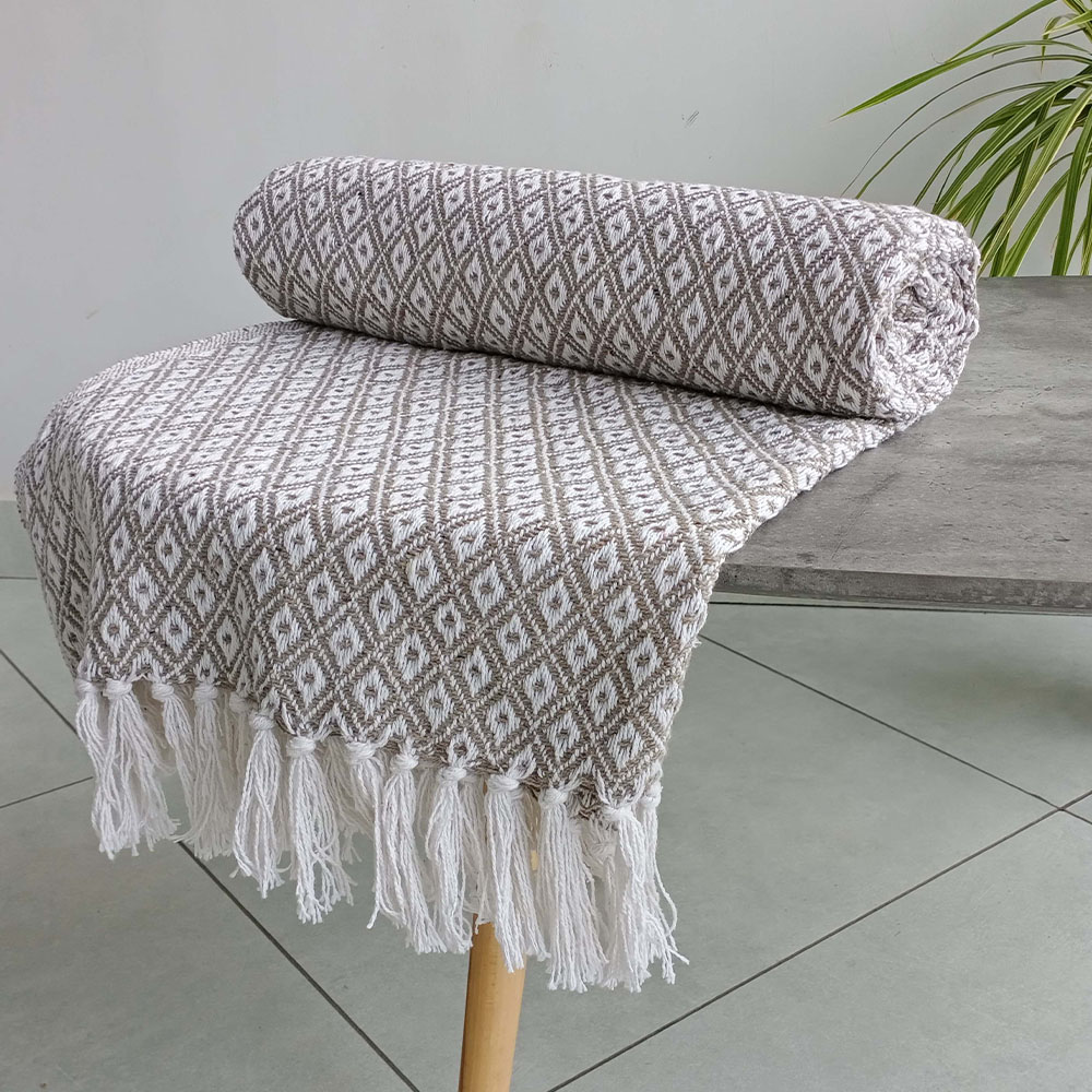 Rapport Home Natural Eden Recycled Cotton Geometric Throw 178 x 254cm