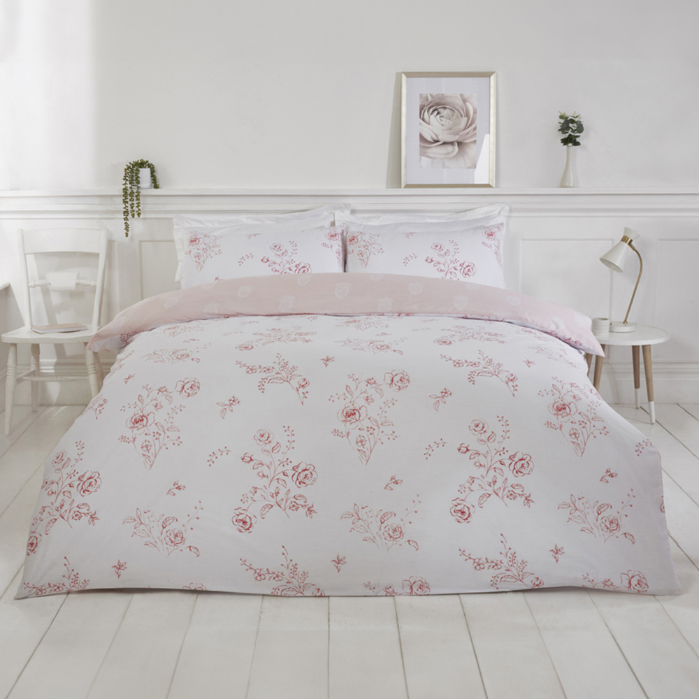 Give a flowery touch to your decor with this PH Sadie Duvet Set from Rapport Home. The set includes a duvet cover and two matching pillowcases made using sustainably sourced BCI cotton and recycled polyester, making it easy to care for. Designed by British designers, this design in rose pink has a traditional, fresh, clean and simple feel. With a delicate floral print on the front and a paisley motif reverse, it will bring a touch of class to any bedroom. Size: King. Dimensions: Duvet Cover- 230 x 220cm and Pillowcases- 50 x 75cm.