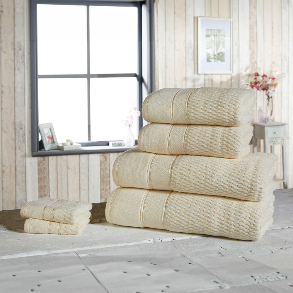 Indulge in luxury with the Rapport Home Royal Cream Velvet Woven Cotton Face Cloth. This exquisite face cloth features a velvet feel textured design with a matching border, adding a touch of elegance to your bathroom. Woven from pure cotton, it ensures ultimate comfort and quick drying after a relaxing soak or hot shower. Measuring 30 x 30cm, this face cloth is made from absorbent natural fibres and designed for easy care, maintaining its quality and softness wash after wash.