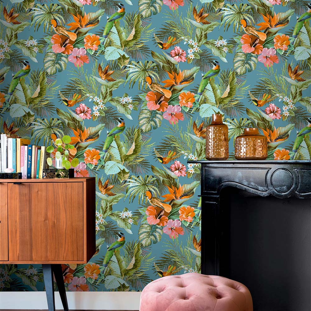Transform your living space with the vibrant beauty of nature using the Rasch Paradise Birds Teal and Multicolour Wallpaper Featuring tropical leaves, birds, and hibiscus flowers against a striking teal backdrop, this eye-catching heavyweight wallpaper brings a touch of paradise into your home. Elevate your living space with a bold, nature-inspired theme and create a captivating feature wall using the wallpaper. Crafted for quality and ease, this heavyweight wallpaper effortlessly conceals minor imperfections on your walls and is quick and simple to hang. Roll Length: 10m. Roll Width: 53cm. Pattern Repeat: 64cm. Pattern Match: Offset Match. Application: Paste the Paper.