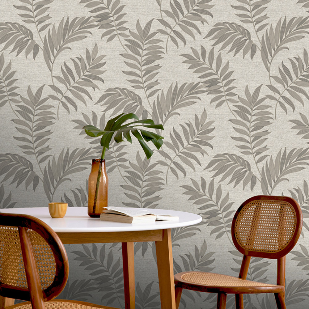 Adorn your home walls with a touch of nature with Rasch Sumatra Palm Taupe Wallpaper. This luxury textured vinyl wallpaper features palm leaves on a textured linen background. It brings a tropical, elegant, and organic feel to any space. The natural textures and botanical patterns evoke a sense of tranquillity and relaxation. This wallpaper is reminiscent of a serene, tropical getaway. It compliments plain linen wallpaper and creates a modest atmosphere by featuring on all four walls.