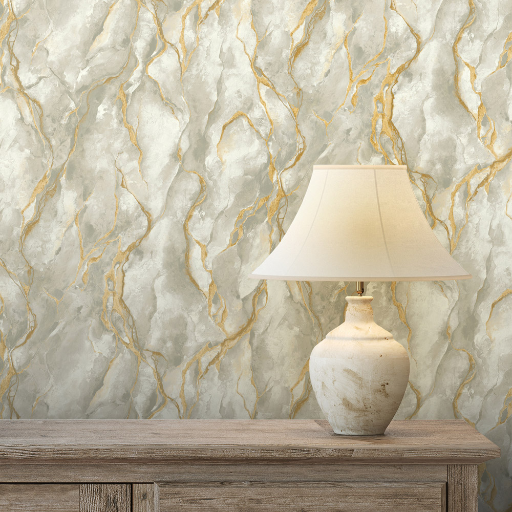 A rich Italian marble on high quality heavy-weight vinyl characterised by striking gold veining on a tonal grey ground. Perfect for adding a touch of opulence and sophistication to any space.