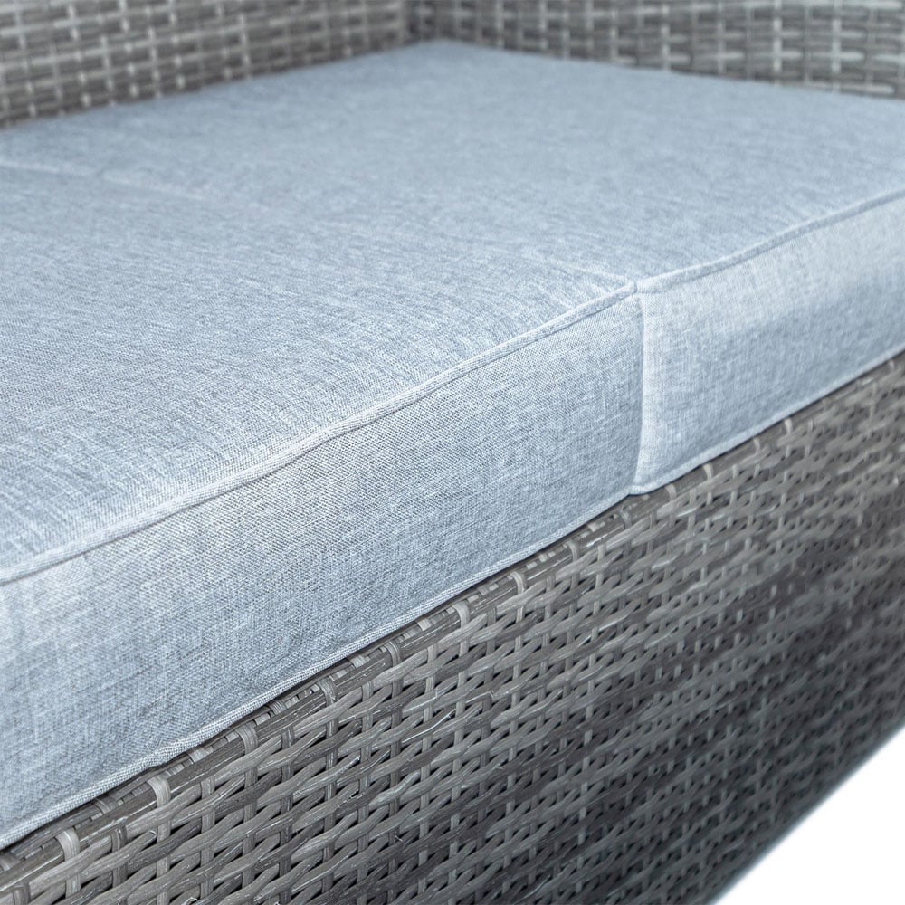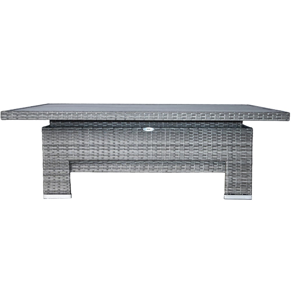Bring comfort and style to your outdoor space with the Vermont rattan garden sofa set, perfect for relaxing, entertaining, and everything in between. This five-seater set includes a spacious three-seater sofa, two stylish armchairs, and an adjustable-height dining table. To add an extra cosy touch, four decorative pillows are included. Built to last, this set is made from high-quality PE rattan, designed to withstand the elements while looking great all year round. The sturdy powder-coated steel frame adds durability, while the deep-filled cushions make every seat a comfortable one. The adjustable-height table provides the flexibility to switch between a low coffee table (49cm) and a full-height dining table (73cm), making it perfect for everything from morning coffee to family dinners. The spacious sofa and armchairs provide plenty of room to stretch out and relax, whether enjoying a quiet evening or hosting guests. Whether it's a summer BBQ, evening drinks, or a lazy afternoon in the sun, the Vermont rattan set is the perfect addition to any patio, decking, or conservatory. Delivered on a pallet in two to three working days, kerbside delivery only.