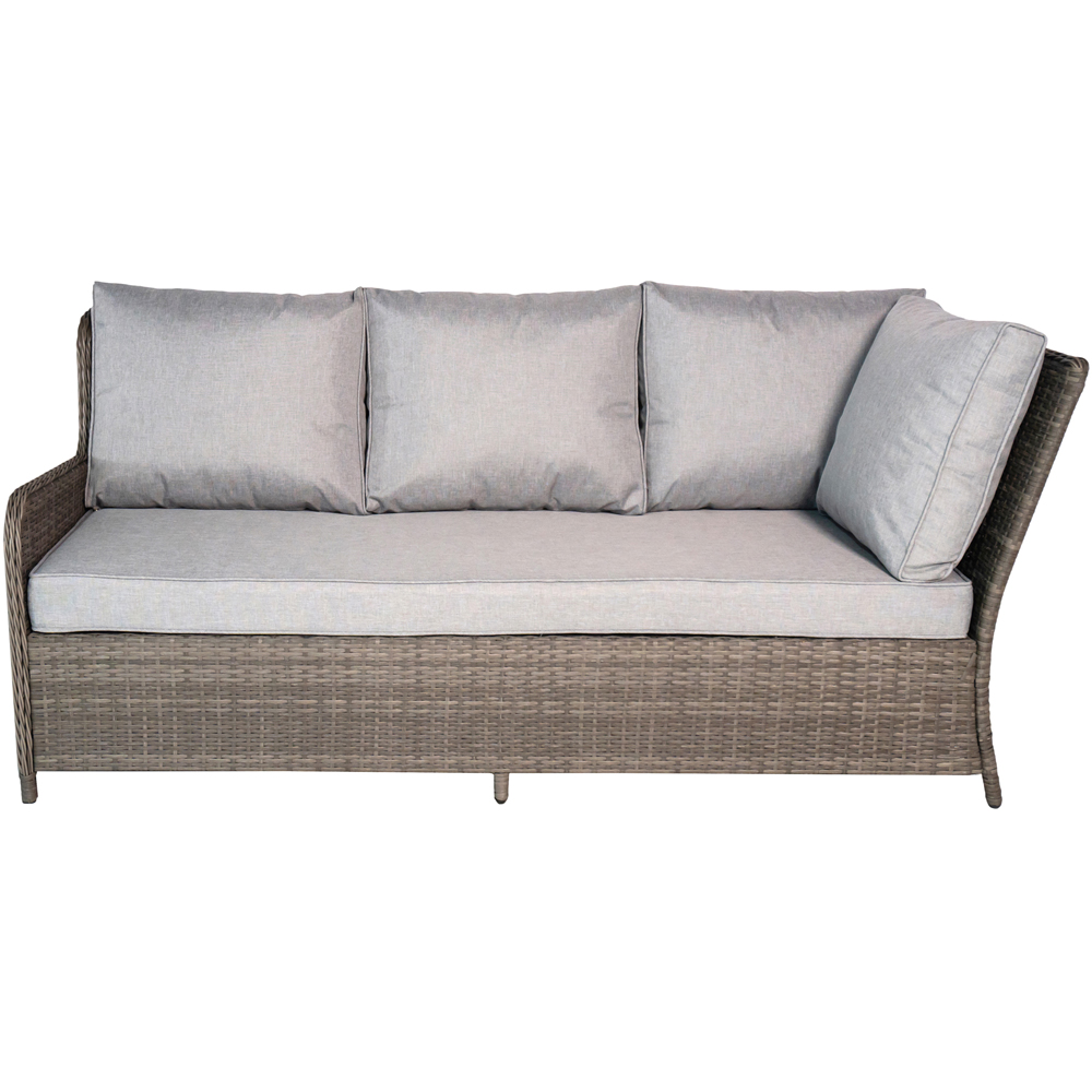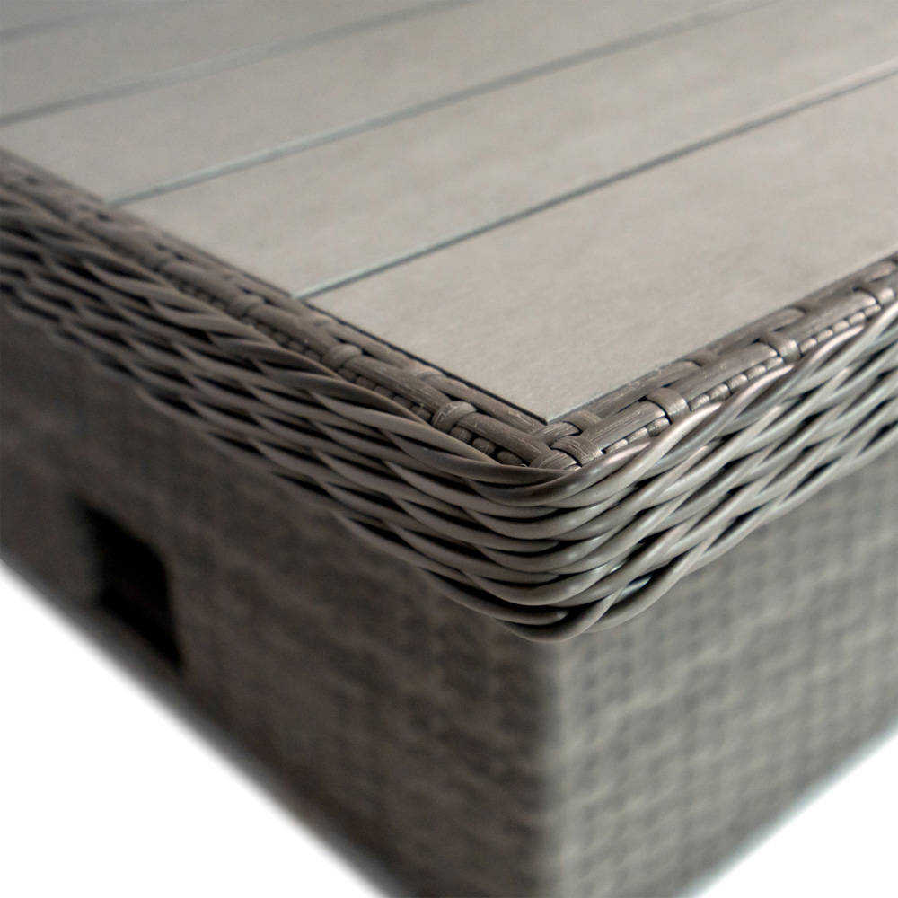 Give your garden, patio, or outdoor space a stylish makeover with the Verona rattan garden furniture set, which combines elegance and practicality in one luxurious package. This seven-seater set features a spacious L-shaped corner sofa, two cosy stools, an adjustable height table with a wooden top, and four free decorative throw pillows. Made from premium, weather-resistant poly rattan, this set is built to endure all weather conditions while bringing sophistication to your outdoor retreat. Its neutral tones fit seamlessly into any garden décor, creating a welcoming atmosphere perfect for both relaxing and entertaining. The adjustable height table adds versatility to your outdoor setup, easily transforming it from a dining table to a coffee or drinks station. Whether enjoying meals with loved ones or hosting a casual gathering, the Verona set ensures comfort and style at every moment. Practical and easy to maintain, this lightweight set can be rearranged with ease and simply wiped down to keep it looking fresh throughout the seasons. As an added bonus, the four free-throw pillows bring an extra pop of comfort and charm to your outdoor space. Whether enjoying quiet mornings, hosting a BBQ, or simply unwinding at the end of the day, the Verona rattan garden furniture set is the perfect outdoor companion. Delivered on a pallet in -two to three working days, kerbside delivery only.