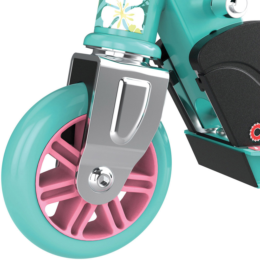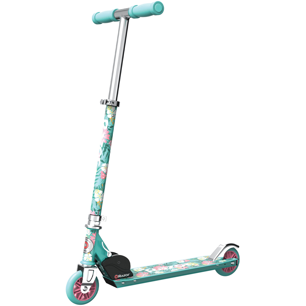Enjoy a fun ride with this Razor Paradise Foldable Kick Scooter. Ready to ride right out of the box, the 2.1 kg lightweight kick scooter features an aluminium deck and T-Tube. It also has height-adjustable handlebars and an original folding mechanism - for quick and easy carry, transport and storage between rides. The rear fender brake and urethane wheels make it the perfect ride for kids on the go. Suitable for ages five years and above - the maximum rider weight is 65kg. Dimensions 60.7 x 28.8 x 82.3cm.