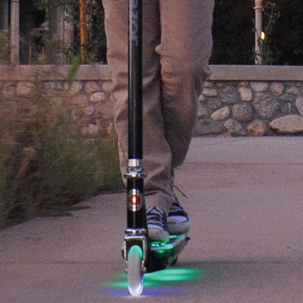 Create a party on wheels with Razor Electric 10.8 Volt Tekno Scooter. Step on the deck to fire up the pulsating multi-colour lights - then keep the fun rolling as you take this light show on wheels on a kick-powered tour through the neighbourhood. It can reach speeds of up to 7 mph with a continuous run time of up to 30 minutes. Featuring Kick-to-start, brushless hub motor, a foot-controlled electronic deck sensor, a rear fender brake, a steel frame, anti-slip translucent grip tape, a 98 mm rubber front wheel with LED light and a 98 mm rubber rear wheel. It comes with a 10.8V lithium-ion pack, rechargeable battery and charger. Maximum Rider Weight: 50 kg. Dimensions: 58.5 x 30.5 x 80 cm. Weight: 3.9 kg.