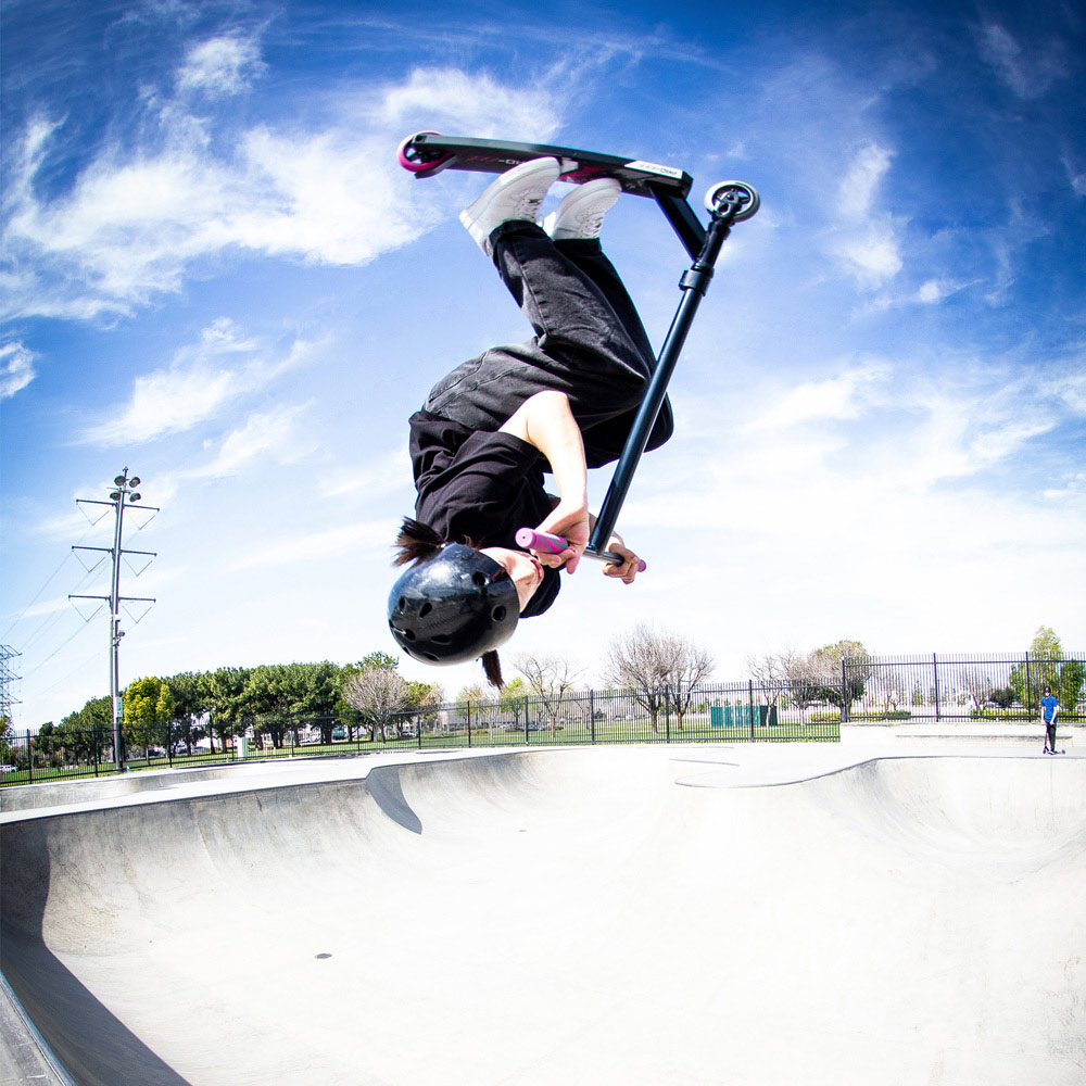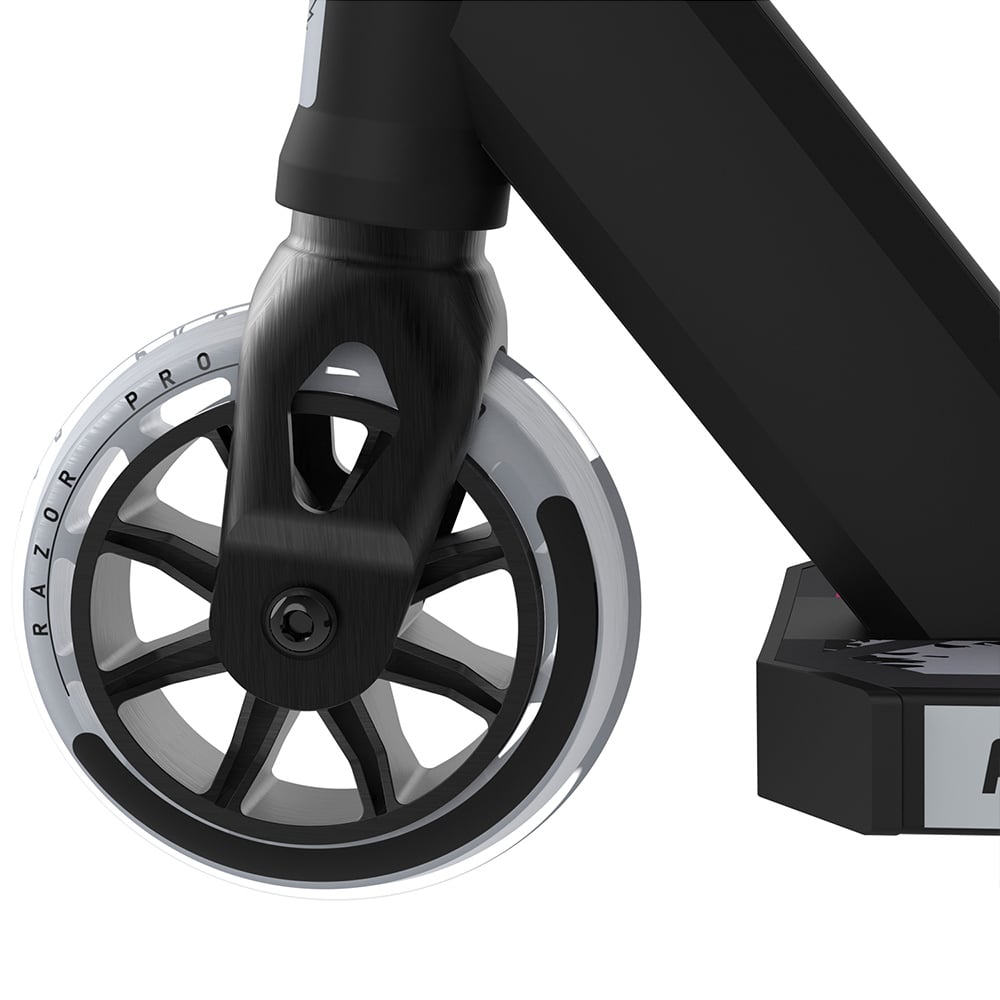 Enjoy a fun and eco-friendly ride with this black Razor Pro XXX Scooter. Providing top-quality rides for kids, teens and adults, this scooter is big on fun and light on the wallet. Its height and width are specially designed with taller riders in mind, maximizing performance as you practice and pull off trick stunts. You can customize it for your own unique look with mix-and-match grip tape, too! The Pro-XXX features all the essentials, including a lightweight aluminium deck with boxed edges, a durable front fork, high-speed 110 mm urethane wheels, a flex fender brake, and straight handlebars secured to the scooter with a three-bolt clamp. When it comes to trick riding, you’re “on the grow,” so go with the solid platform scooter that lets you build up your ride over time. Suitable for ages eight years and above. Dimensions: 71 x 56.5 x 84cm, weighs 3.45kg. Maximum rider weight: 100kg.