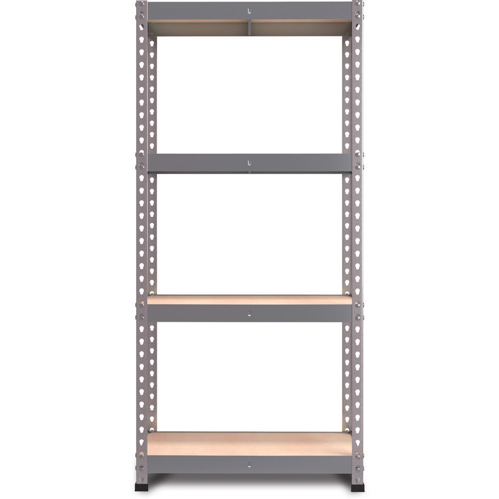 This premium RB Boss FastLok Freestanding Unit can hold up to 75kg per shelf. The unit, with its galvanised steel construction and high-quality medium-density fibreboard, is perfect for all your storage needs. It is robust and versatile and can be used effectively in a large variety of environments, from offices and utility rooms to garages and workshops. The RB Boss FastLok Rivet Assembly System ensures fast, easy and hassle-free assembly. Select the components you wish to assemble, position the rivets at the top of the corresponding keyholes and push the riveted component downwards into place and secure it with a mallet. You could build a sturdy and dependable garage shelving unit in under 10 minutes! With four heavy-duty shelving tiers, this RB Boss FastLok Shelving Unit provides a vast amount of storage area, so you don’t have to worry about running out of space. The galvanised steel construction of the unit’s frame and the dense fibreboard means that each shelf can handle a large amount of weight. The RB Boss range is truly the be-all and end-all of Freestanding Shelving Units. Please note that images are for illustration purposes only, and scale may not represent the dimensions of the actual model. Please refer to the product dimensions before ordering.