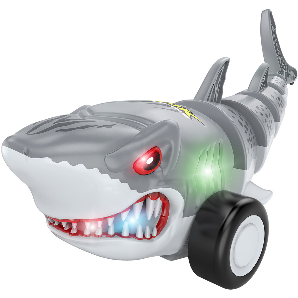 Experience excitement with the RC Shark Car. Available in assorted colours, this car features a menacing shark design, adding an element of thrill to your child's playtime. Equipped with bright lights, it emits a fun glow while its swinging tail enhances the playing experience. Gift this shark car child to make their playtime even more enjoyable.