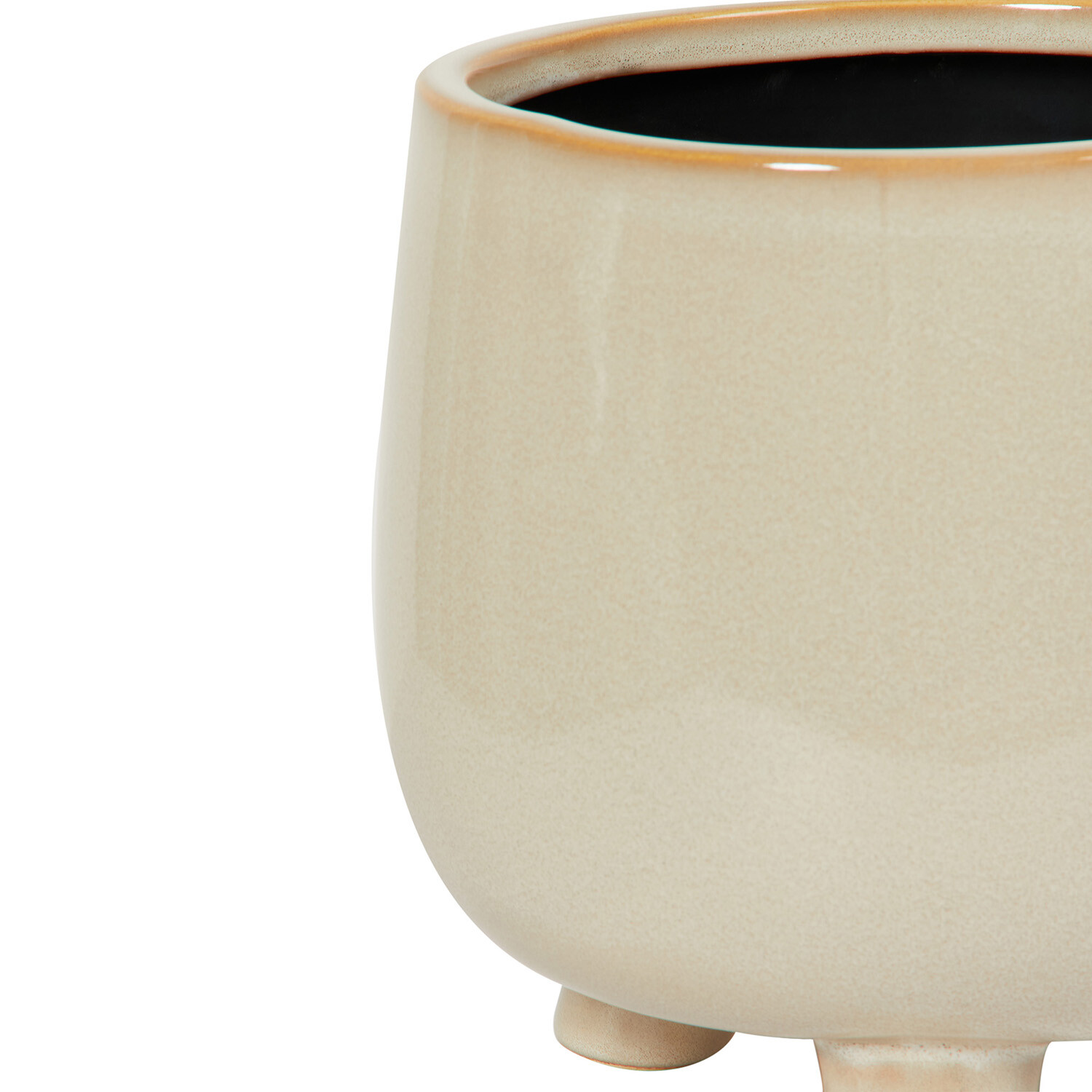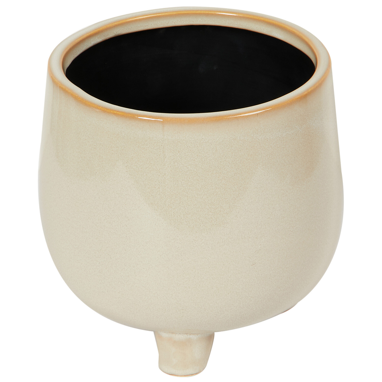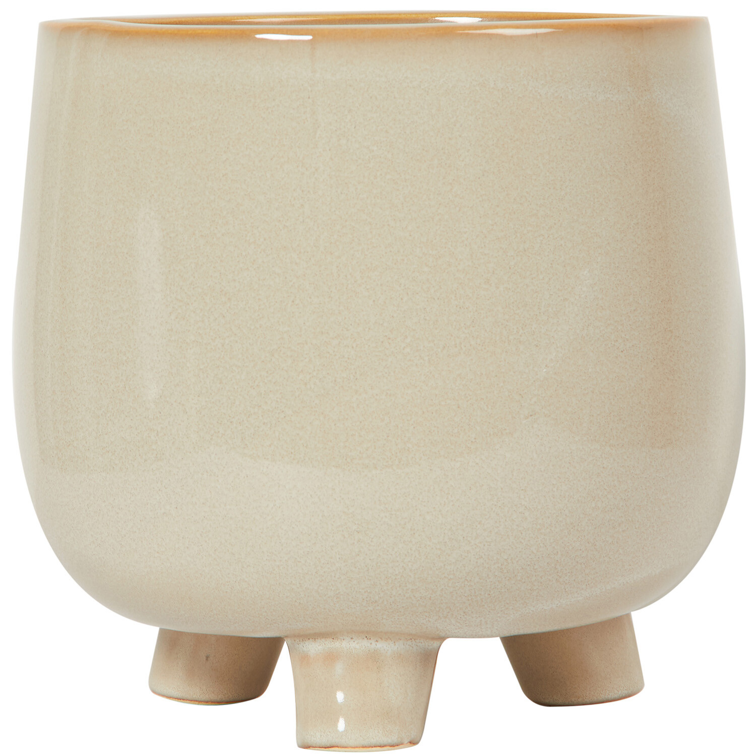 Elevate your home décor with the Reactive Glaze Footed Planter. Featuring a classic reactive glaze in elegant cream, this planter seamlessly blends with various home styles. Its three sturdy legs provide stability and support, making it an ideal choice for showcasing your houseplants. This planter combines both functionality and style, making it a standout addition to your interior design.