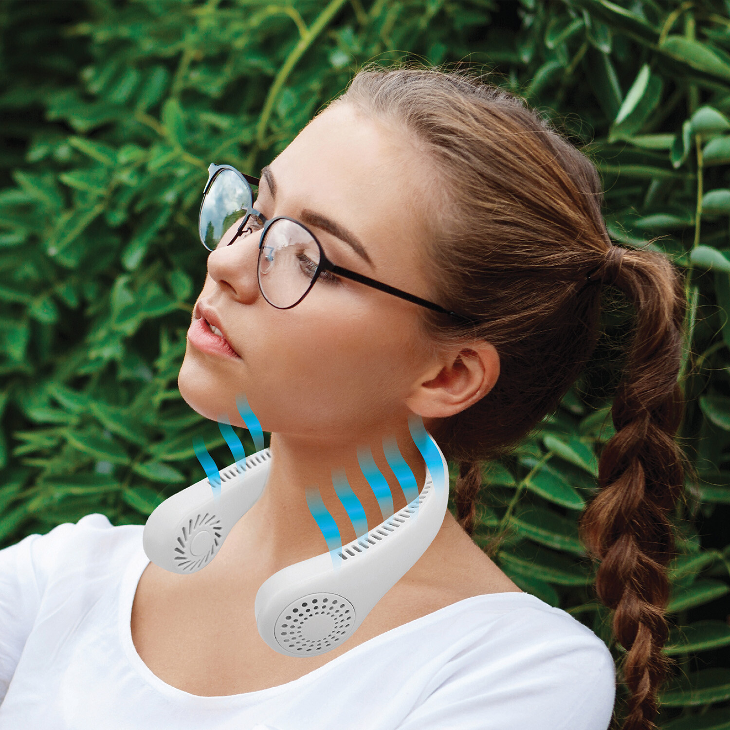 This Breeze It Rechargeable Portable Neck Fan offers a smart way to stay cool in summer while camping, watching games, cycling and more! Its lightweight and portable design allows it to sit around your neck without causing discomfort, while the powerful yet quiet operation with three adjustable speeds takes the comfort to new levels. Easy to recharge with the included USB, it's great for on-the-go cooling.