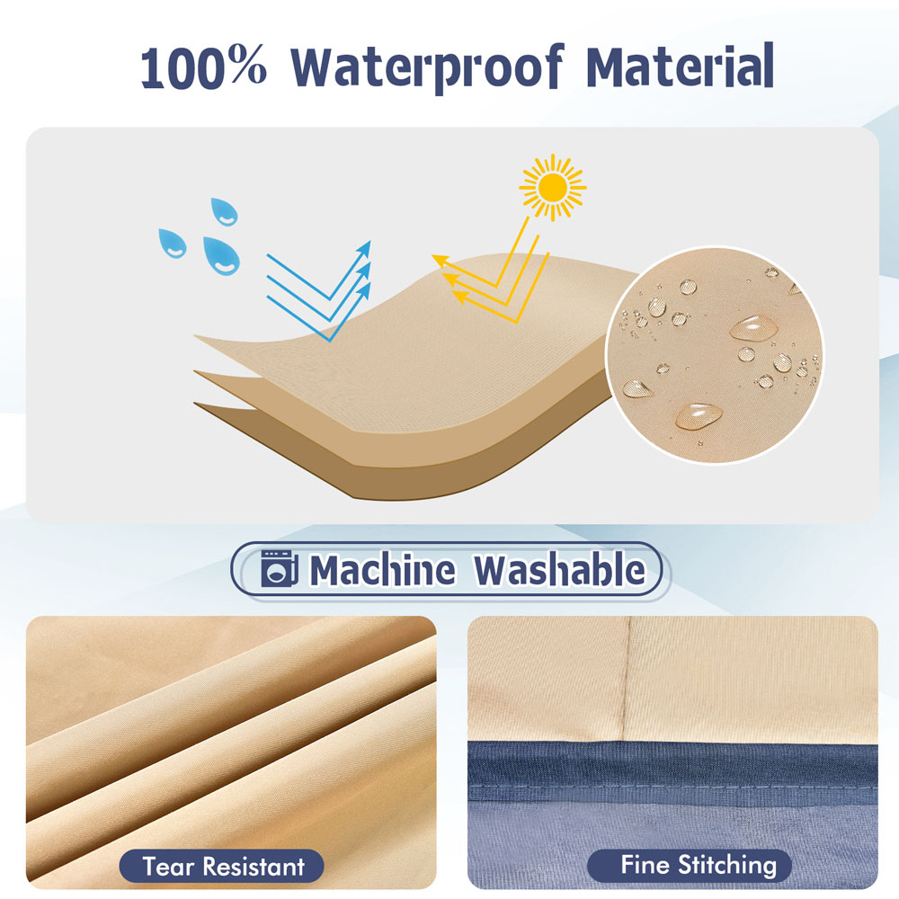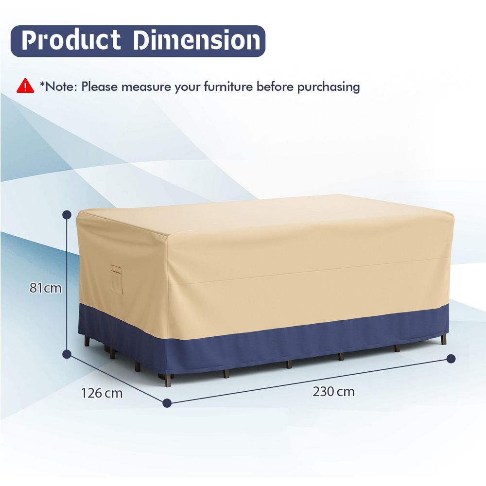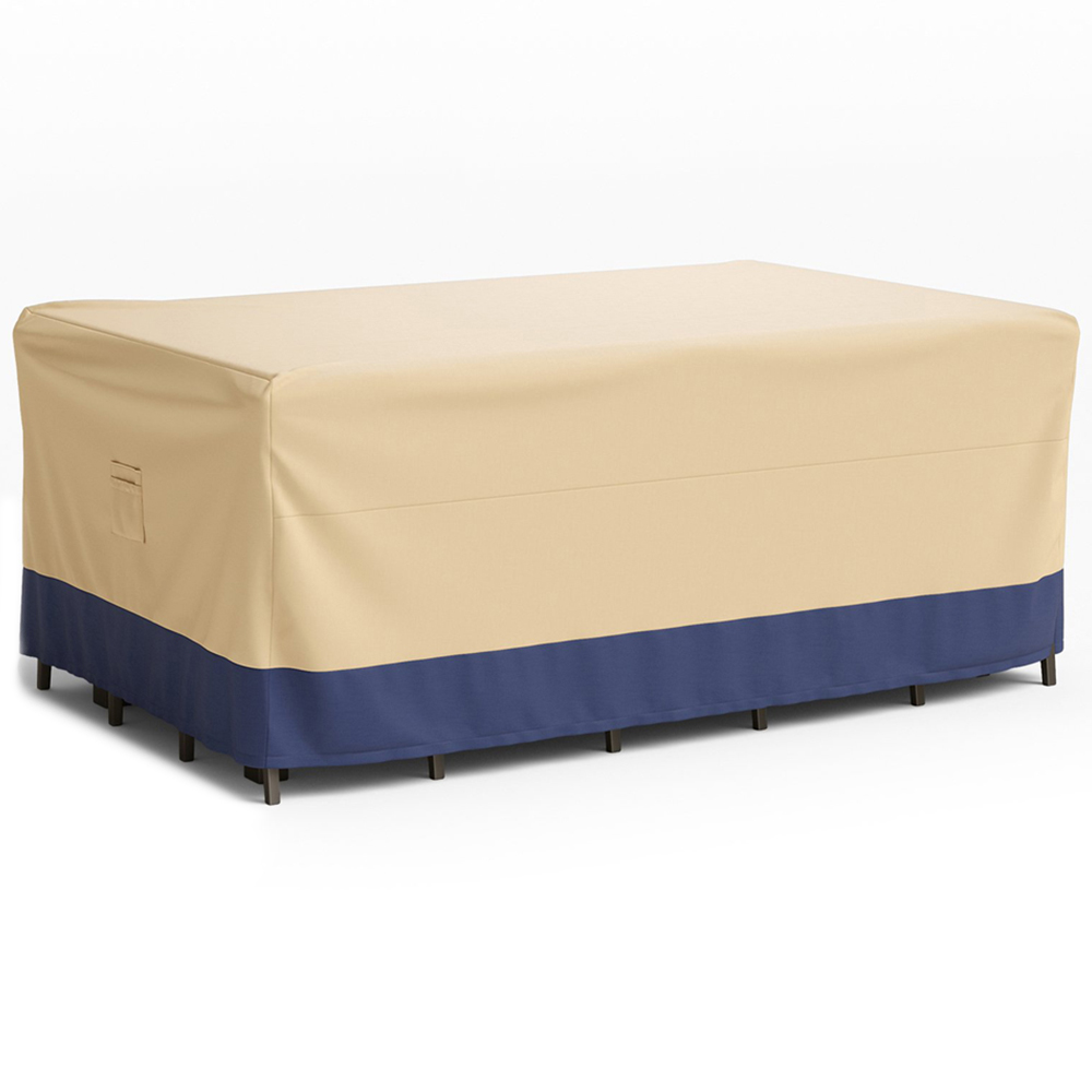 Offer your outdoor furniture the ultimate shield with our Costway Rectangular Polyester Outdoor Dining Set Cover. This patio table and chair set cover is crafted from superior polyester with a waterproof coating. This robust cover ensures your patio table and chairs remain dry and pristine, shielding them from sun, rain, snow, leaves, and dust. With its high wind resistance and considerate air vents, this cover not only prevents displacement during windy conditions by securing with safety buckles and a drawstring but also promotes air circulation, thus extending the lifespan of your furniture. The cover is easy to handle, store, and maintain, making it an ideal choice for keeping your outdoor dining area in top condition.