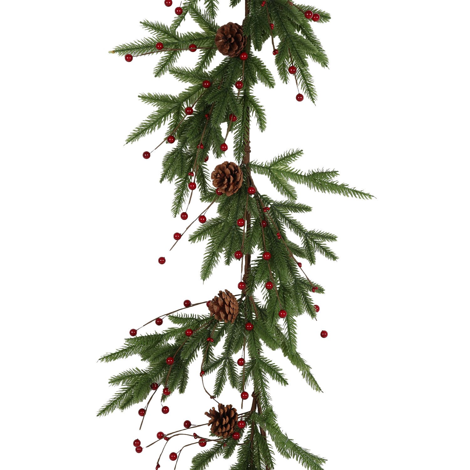 This Red Berries and Pinecone Garland is a gorgeous way to decorate your home this festive season. This lovely, rich, full garland features natural-looking faux foliage finished with bright red berries and pinecones to give a traditional feel. Incredibly versatile, this garland is easy to drape over mantelpieces, and mirrors or wrap around your bannisters.