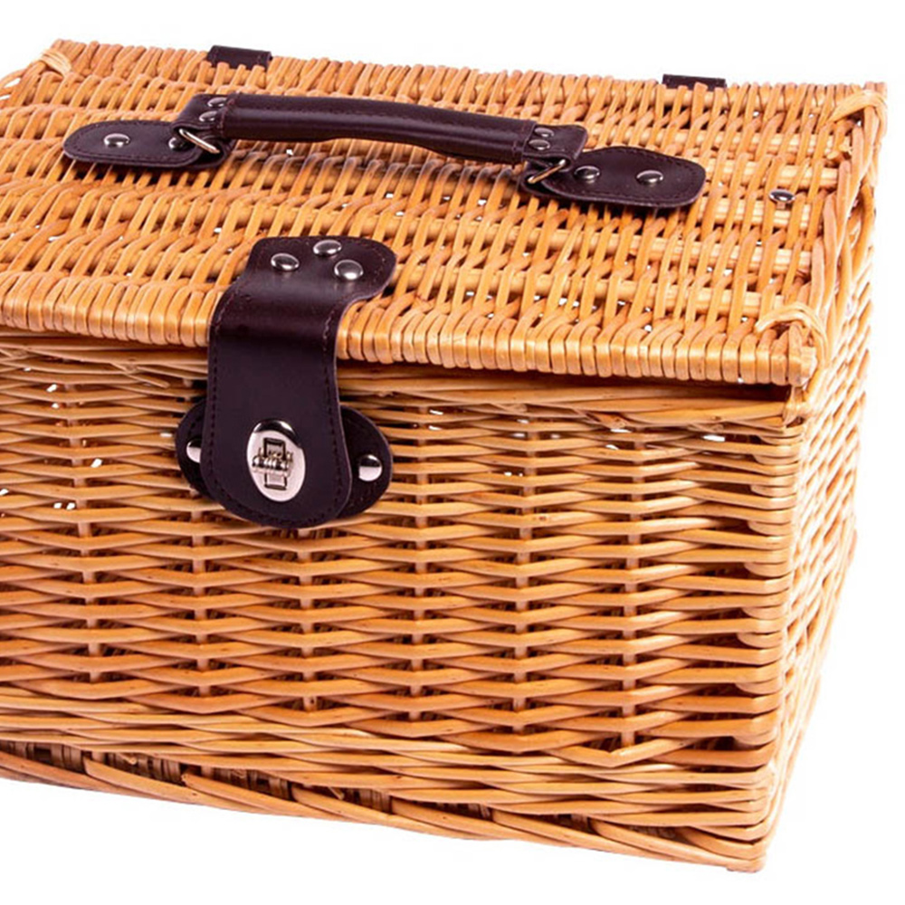 The Red Hamper Kensington Wicker Picnic basket is a beautifully designed empty basket made from full buff willow. It features leatherette fastener hinges and handles, adding a touch of elegance to its overall appearance. This picnic basket is not only attractive but also of high quality, showcasing excellent craftsmanship. The dimensions of this basket are 31 x 35 x 22cm.