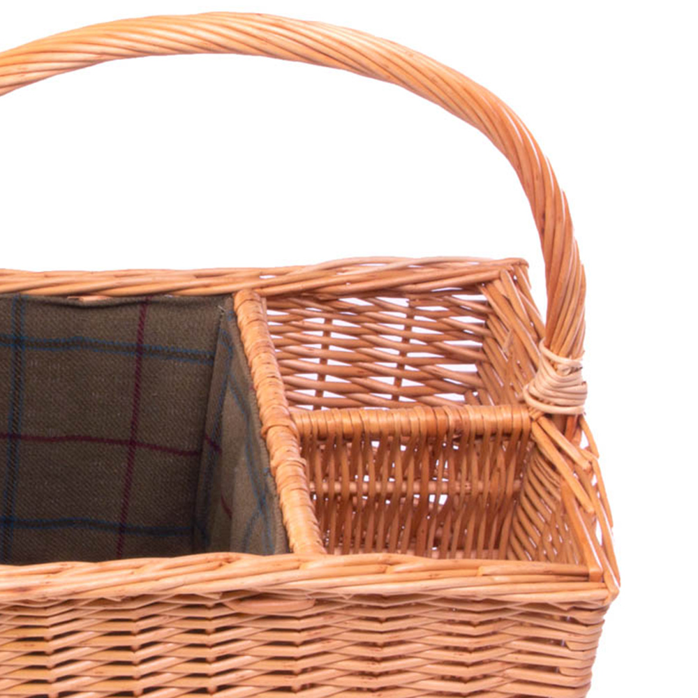 The Red Hamper Picnic Basket with lining is crafted from full buff willow, This picnic basket features two bottle sections and a green lined section. Its attractive design and high-quality construction make it a must-have for any outdoor gathering. Made from sustainable materials, this basket is not only stylish but also environmentally friendly.