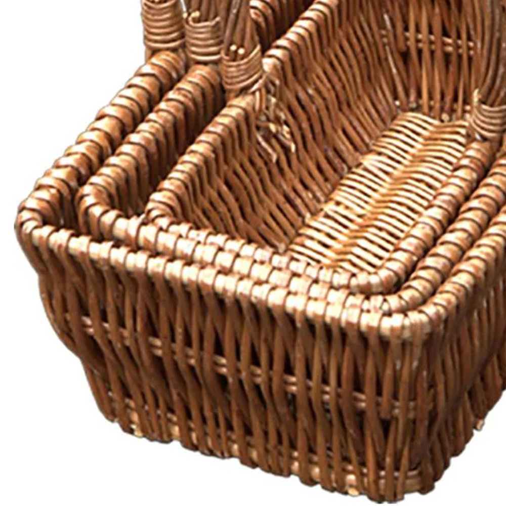 The Red Hamper set of 3 rectangular gift shopping baskets is crafted from high-quality, well-made basketware. These baskets are made from full double steamed buff willow, ensuring durability and longevity. The largest basket in the set stands 29cm tall, including the handles. Perfect for all your shopping needs, these wicker shopping baskets are both practical and stylish.