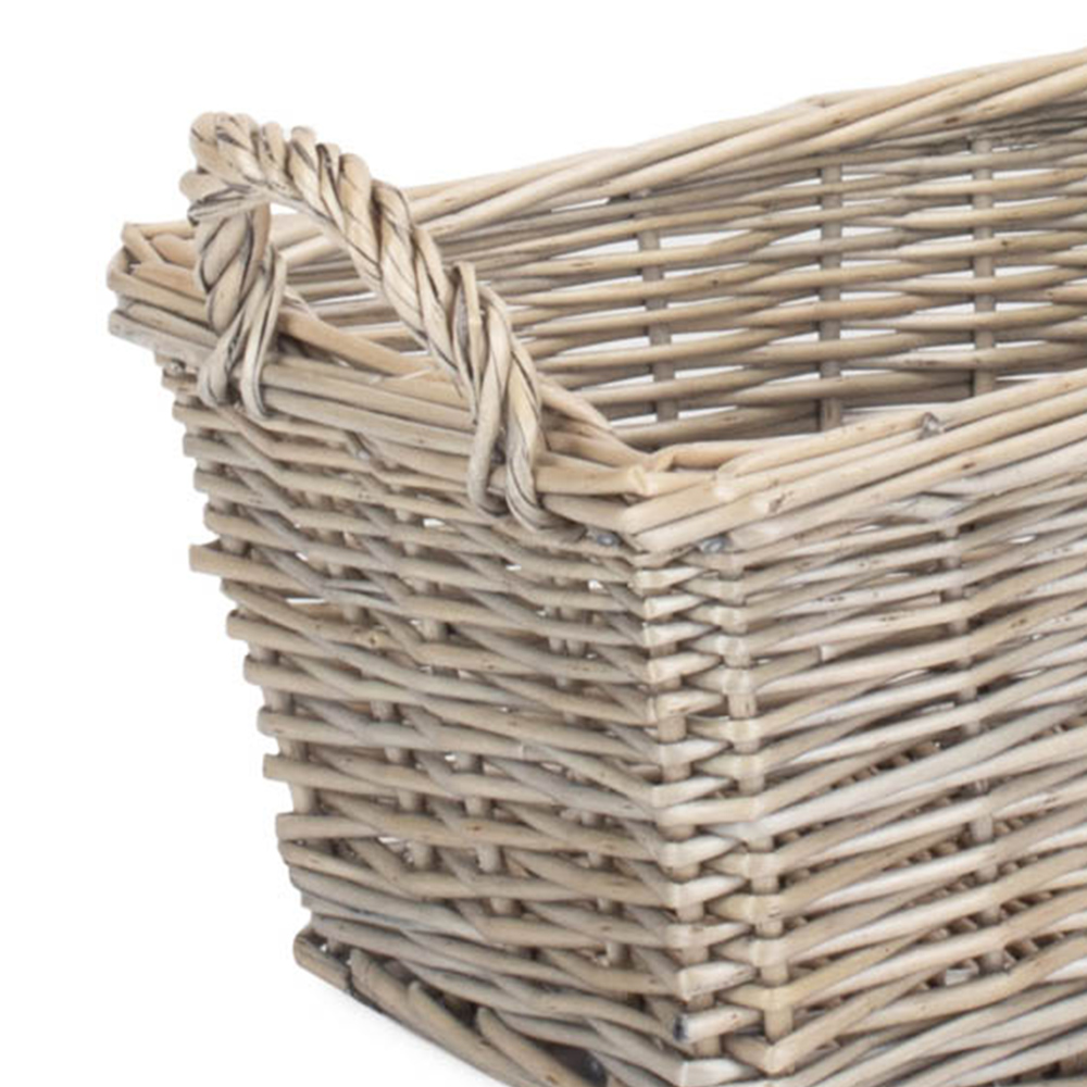 This exquisite Red Hamper storage basket, crafted from natural materials, showcases a stunning antique wash finish. Its tapered wicker design adds a touch of elegance to any space. Measuring at a small size of H14 x W19 x L29cm, this high-quality and well-made basketware is perfect for organizing your belongings.