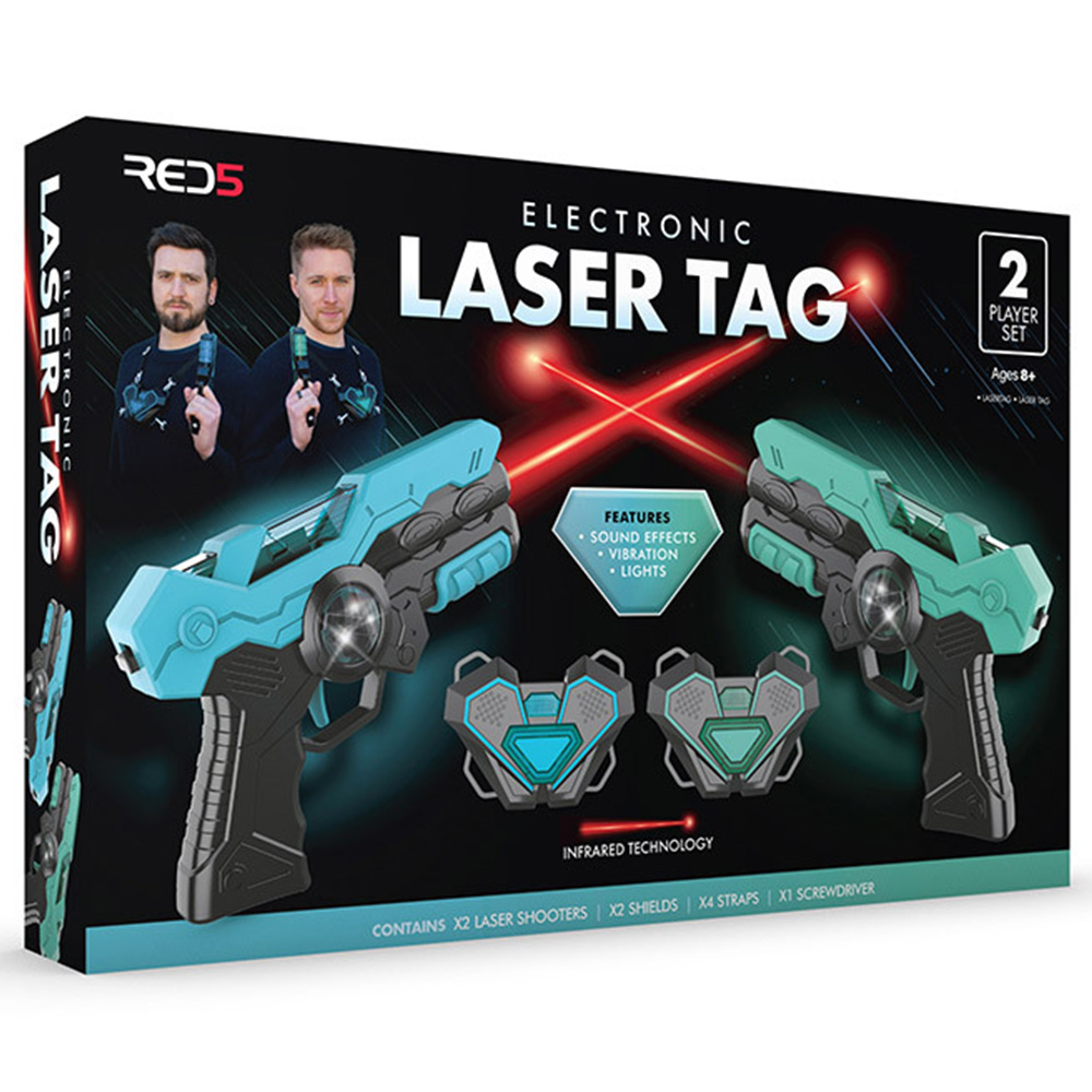 Prepare for an action-packed game of laser tag with this RED5 2 Player Laser Game. This laser shooter game promises endless hours of enjoyment with friends. Equipped with user-friendly laser guns and sensors, the game is suitable for both indoor and outdoor play. Simply secure the sensors and let the fun begin. The set comprises two laser guns and two sensors, allowing for immediate gameplay. With a range extending up to 40 meters, players can engage in thrilling pursuits, utilising obstacles for cover, adding an extra layer of excitement to the game. Rally your friends and gear up for an exhilarating showdown with this two-player laser shooter game. Suitable for ages eight years and above.