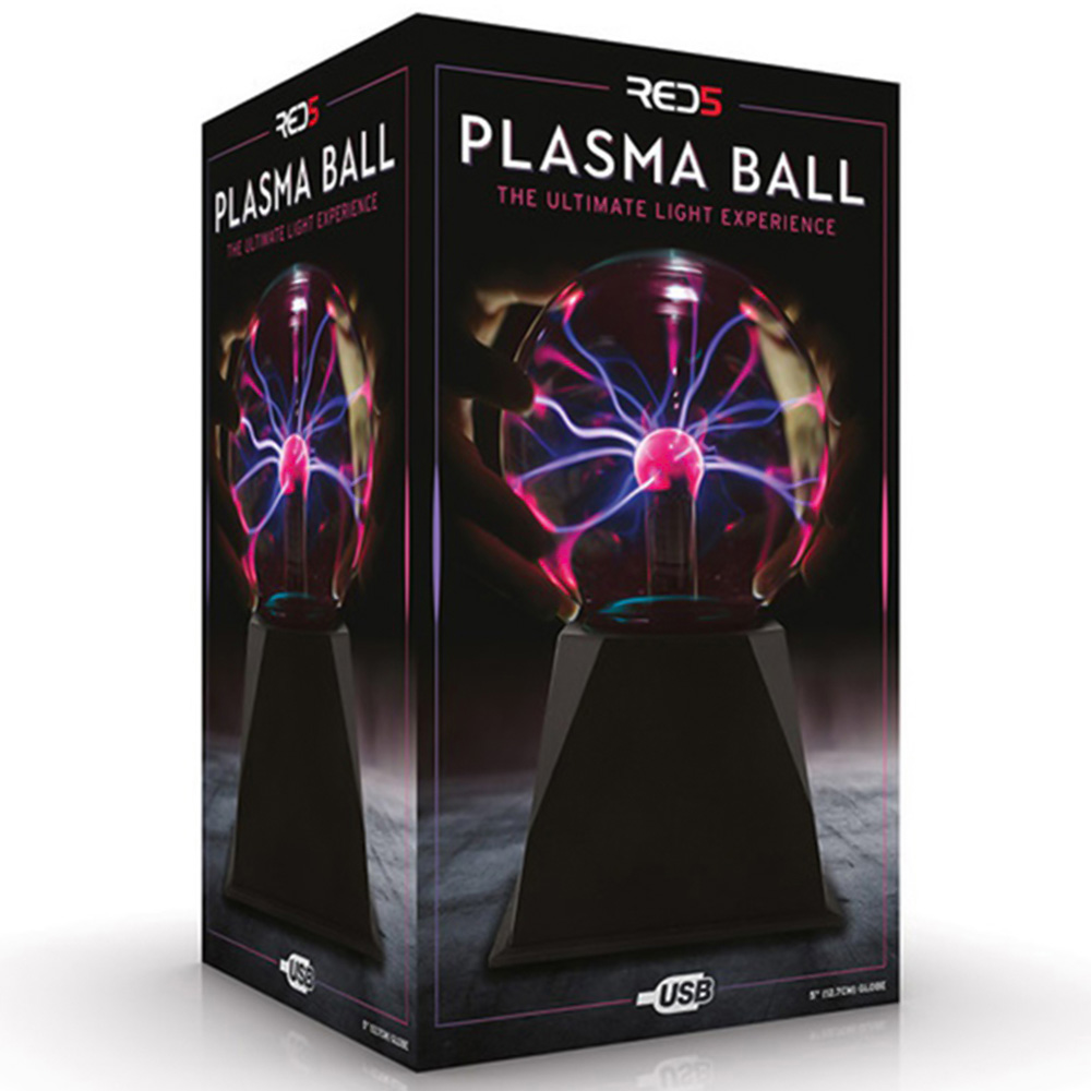 Add fun and learn with RED5 Plasma Ball 12.7cm. Place your fingers on the surface of the glass and coloured balls of light follow your every move. You can experience the ultimate interactive light and even feel the energy as it touches your fingertips. It can be an aesthetically pleasing way for children to see how electricity works. Switch it in a darkened room and enjoy the show and glow.