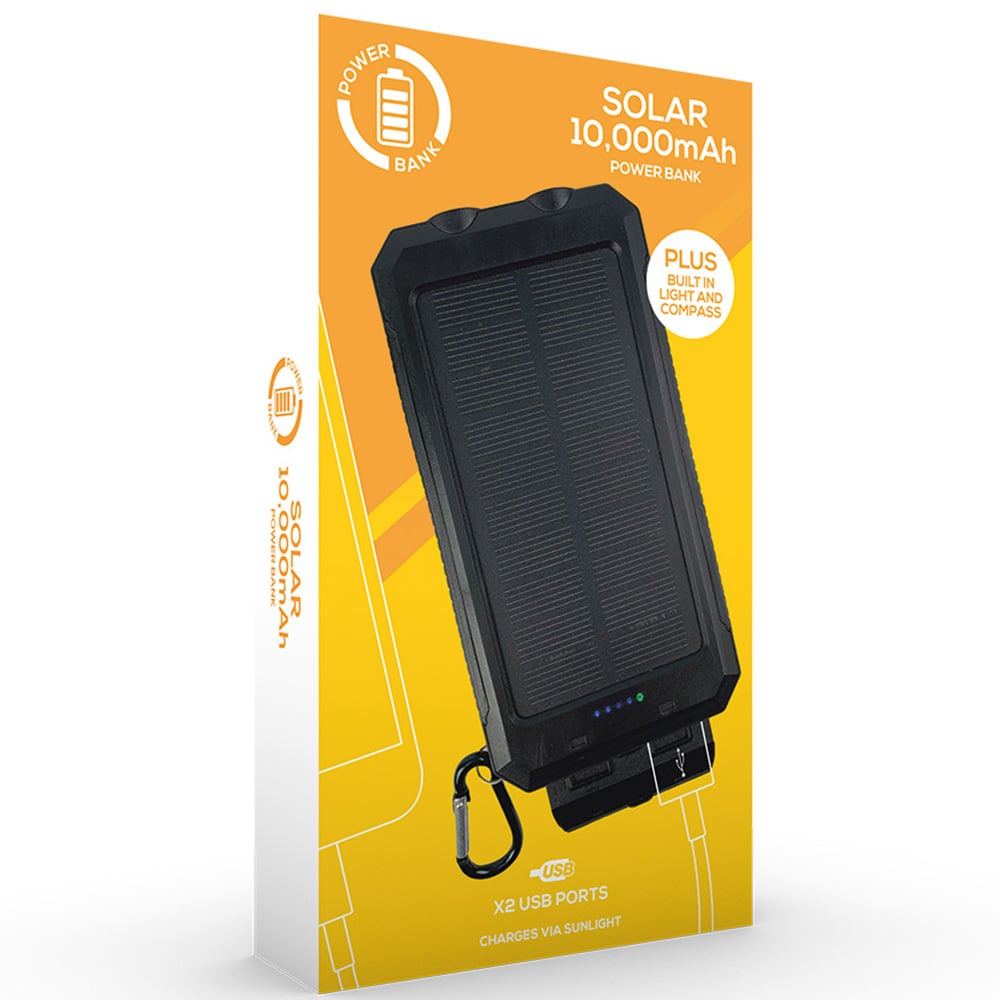 Keep your mobile phone fully charged using this RED5 Solar Power Bank 10000mAh. It features a huge 10,000mAh charge capacity and two USB inputs for dual charging. This power bank is built with a solar panel allowing you to charge it or top it up using sunlight. With a light and compact design, it's a great companion for the outdoors.