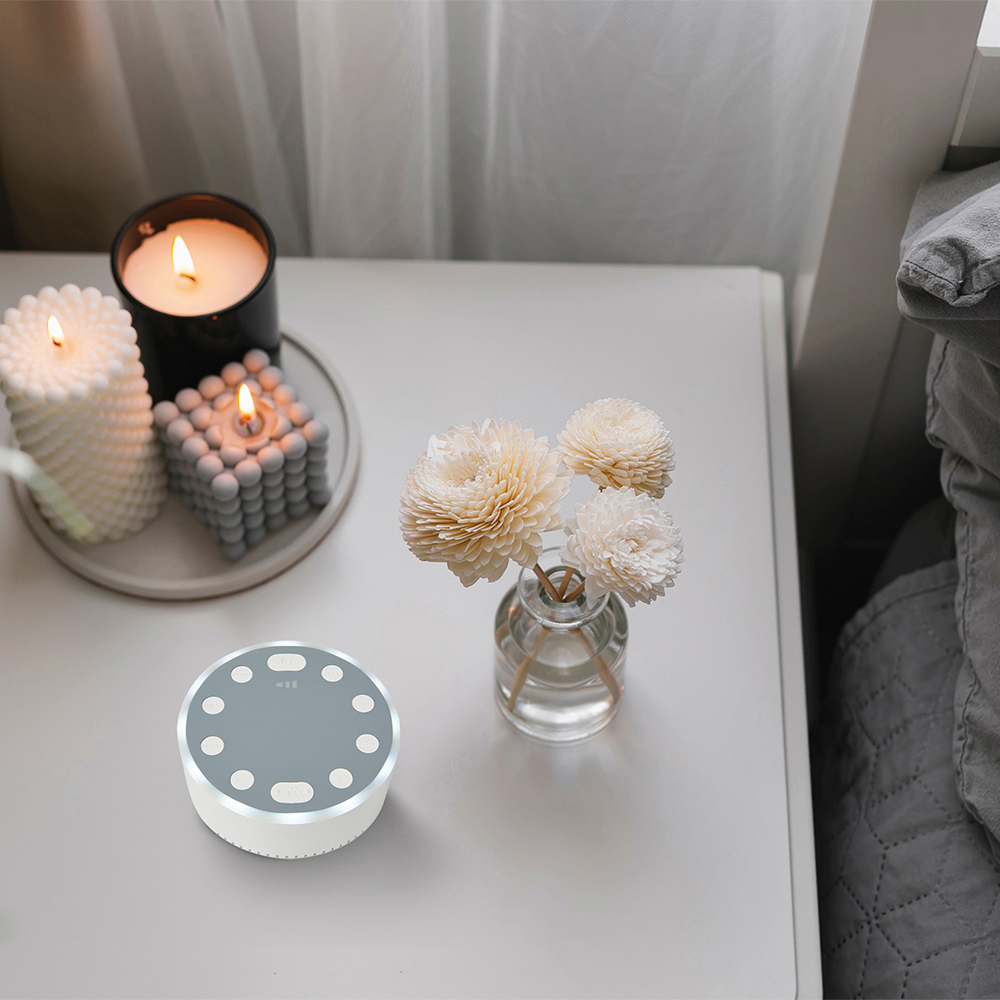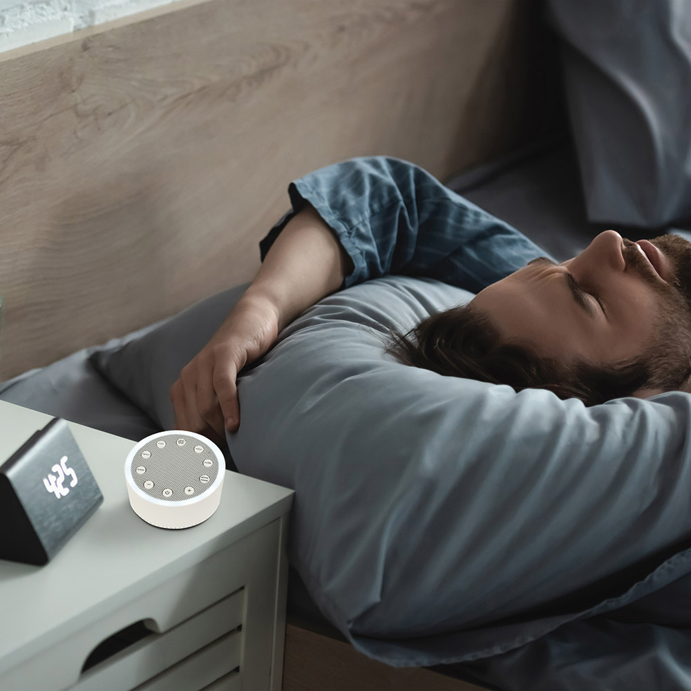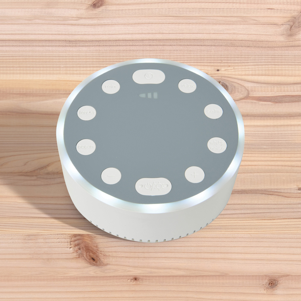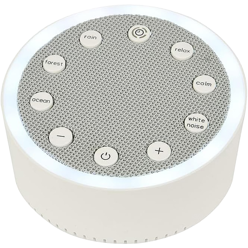 Enhance your sleep routine with the Well Being Sound Sleep Soother, a portable speaker offering six calming sounds and a soothing breathing light to help you drift off peacefully. Choose from white noise, rain, forest, ocean, calm, or relaxed sounds with adjustable volume. Features a timer (15, 30, or 60 minutes) and a USB rechargeable battery for relaxation anytime, anywhere. Say goodbye to restless nights and enjoy a tranquil sleep environment.