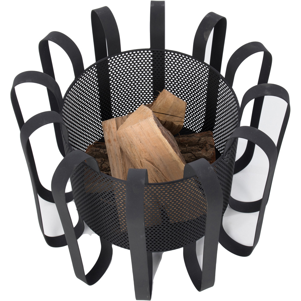 This RedFire fire basket Kester is one with a typically innovative design and manufacture, fits any contemporary style garden perfect for people to gather around and be hypnotised by the flickering flames of burning logs. With this expertly crafted firepit Kester they will certainly not be disappointed, with the fire behind the gauze everyone around the fire basket has a good view and is able to enjoy the warmth during a colder evening. Manufactured from high-quality steel with a heat-resistant tough black paint finish, the fire pit is very distinctive as a decorative object in your garden, but certainly comes in handy as well as an atmospheric heat source to keep your friends and family comfortable in your outside area. The Kester has a total diameter of 55cm.